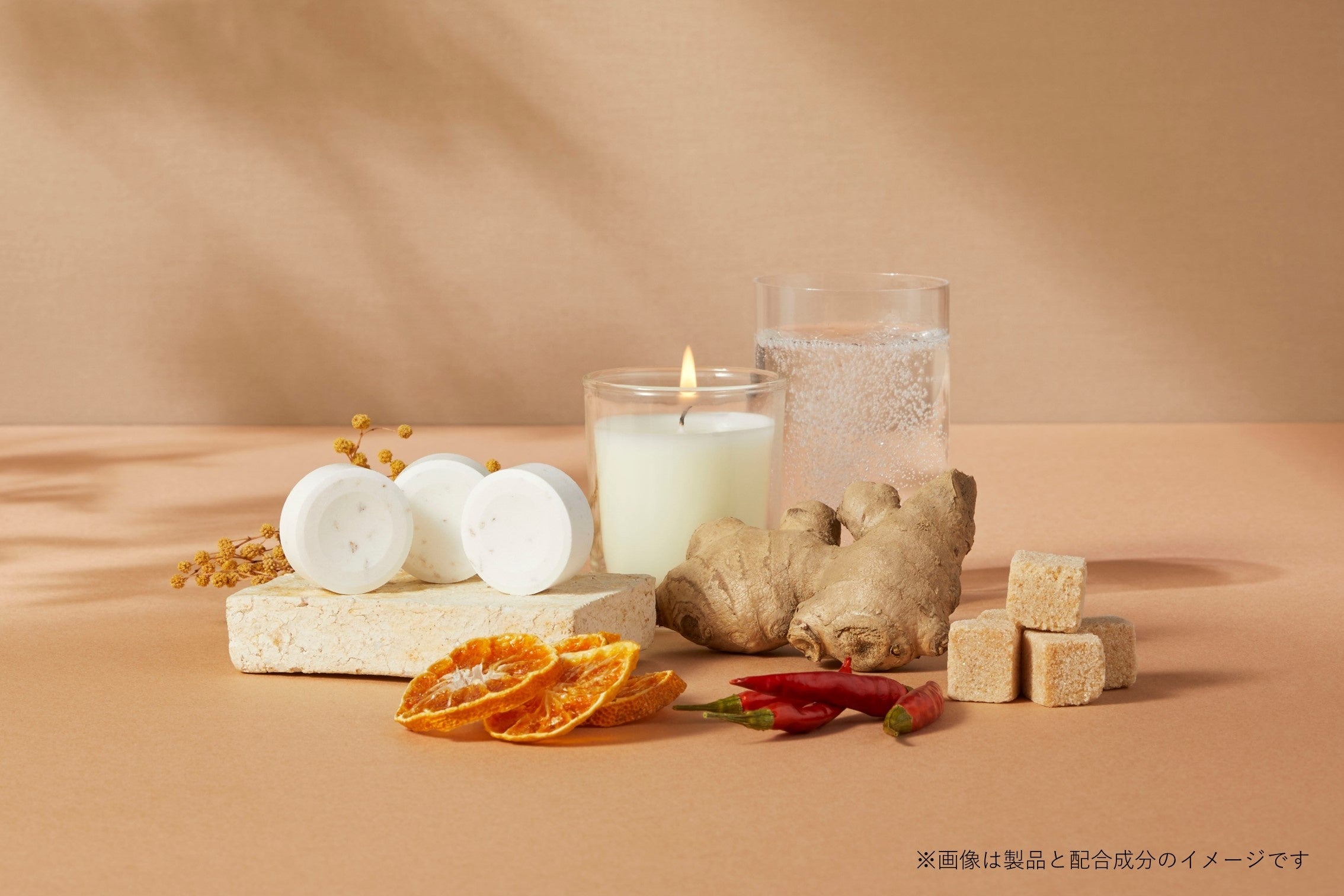 この度発売した「♭(フラット)for YUME HEADBATH」は、頭浸浴を実現するシャンプーアクセサリー「YUME HEADBATH(ユメ ヘッドバス)」にセットし、少しずつお湯に溶かしながら使用する頭浸浴用の炭酸タブレットです。温かみを感じるジンジャーオレンジとアロマハーブのやさしい香りに包まれながら、髪・頭皮をじんわり保湿する新処方で、頭浸浴のリッラクスタイムをアップデートします。