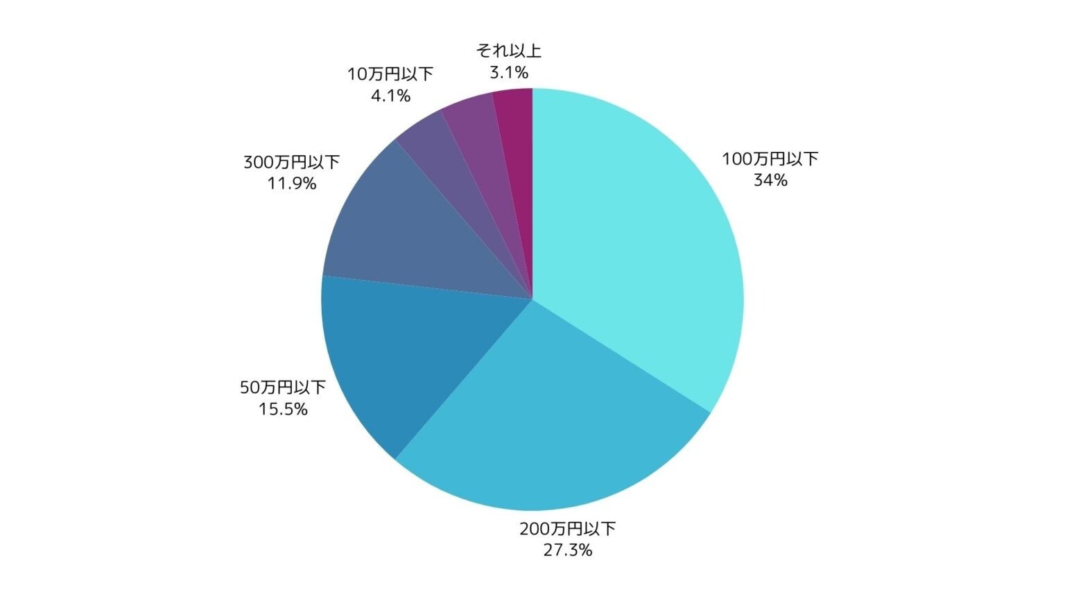 「50万円超100万円以下」が34.0%で最も多く、これに「100万円超200万円以下」が27.3%、「30万円以上50万円以下」が15.5%と続いた。