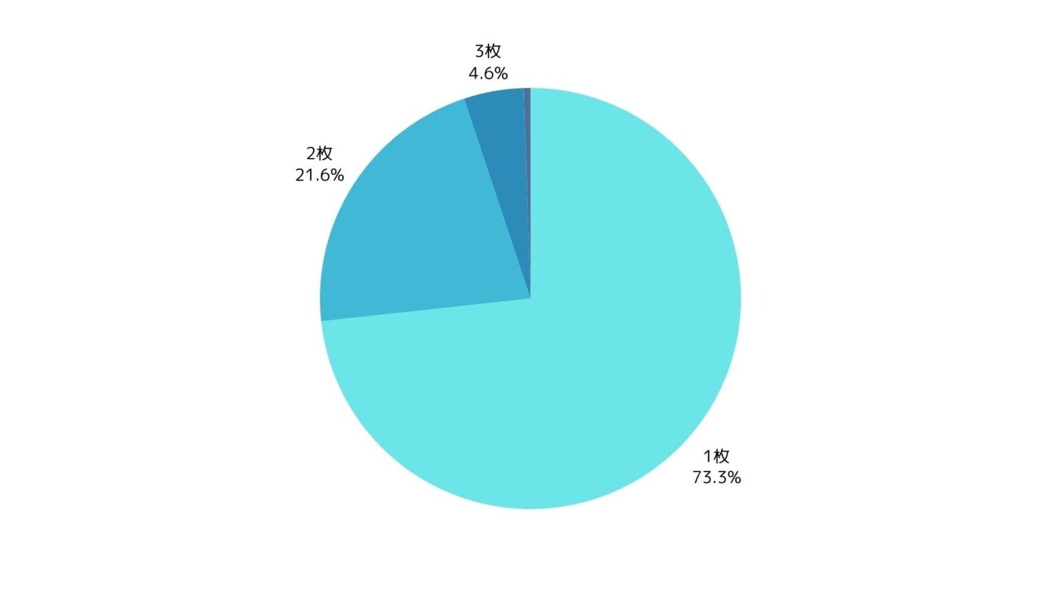 「1枚」が73.3%で圧倒的に多く、「2枚」「3枚」と順番に続く形になったが、複数のゴールドカードを持ち合わせている人も全体の2割ほどという結果になった。