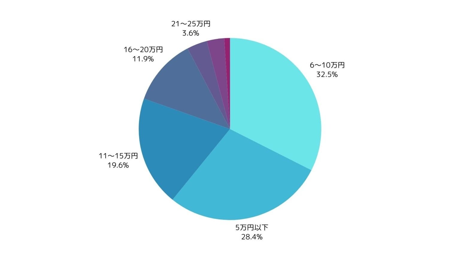 「6~10万円」が32.5%で最も多く、これに「5万円以下」が28.4%、「11~15万円」が19.6%で続く形になった。