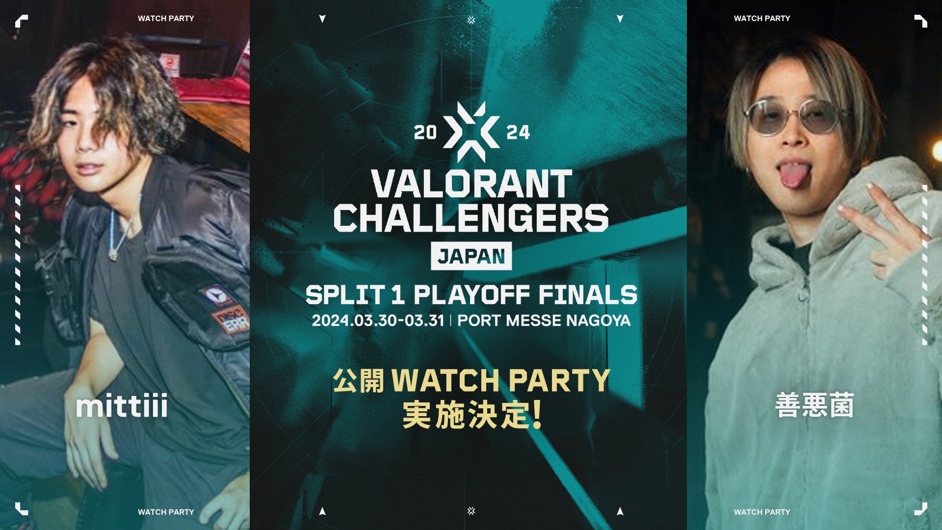VALORANT Challengers Japan 2024 Split 1 Playoff Finals会場内ではmittiii、善悪菌による公開WATCH PARTYの開催が決定!