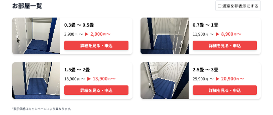 荷物以上に大きな部屋を借りてしまうことや、狭すぎて荷物が入らなかったなんていうトラブルを回避できます。