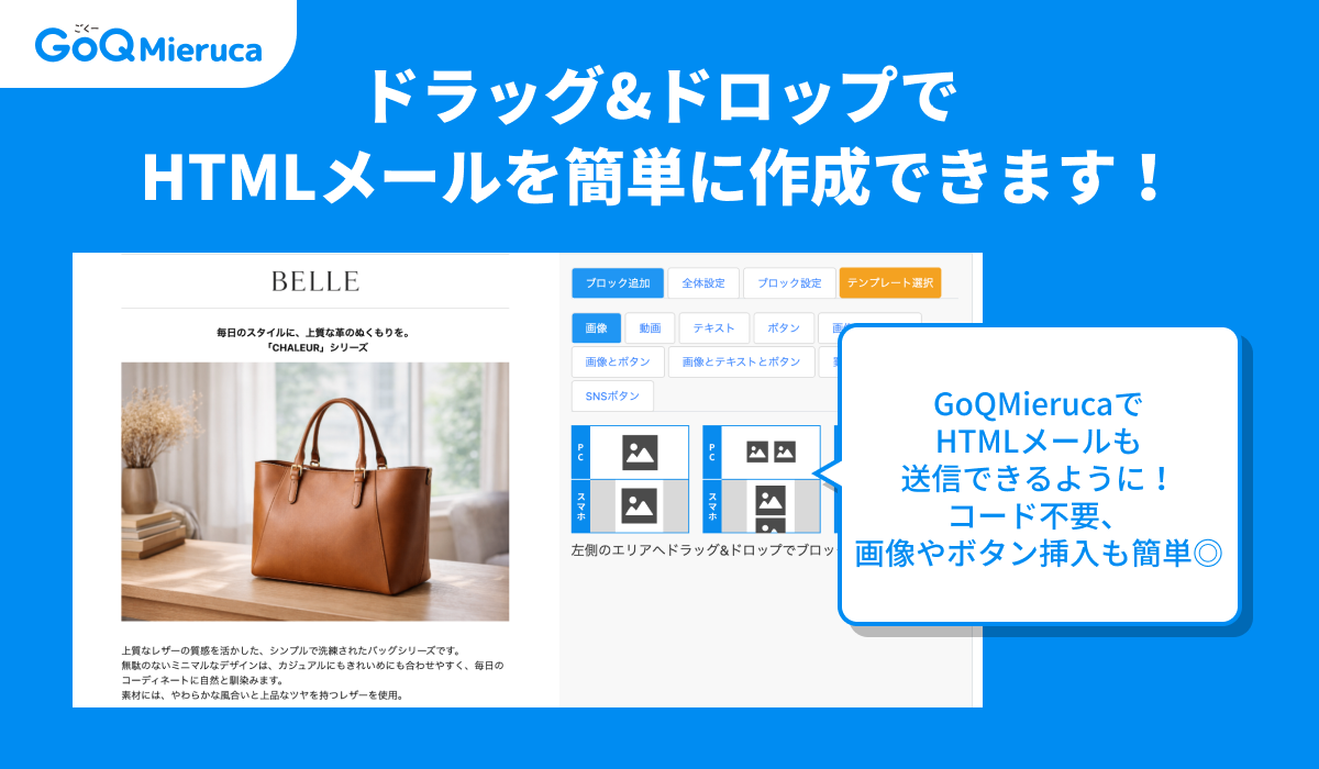 HTMLメールを「誰でも、直感的に」作成・配信可能に。GoQMieruca(ごくーミエルカ)が待望のアップデート、コード不要のHTMLメール作成機能をリリース