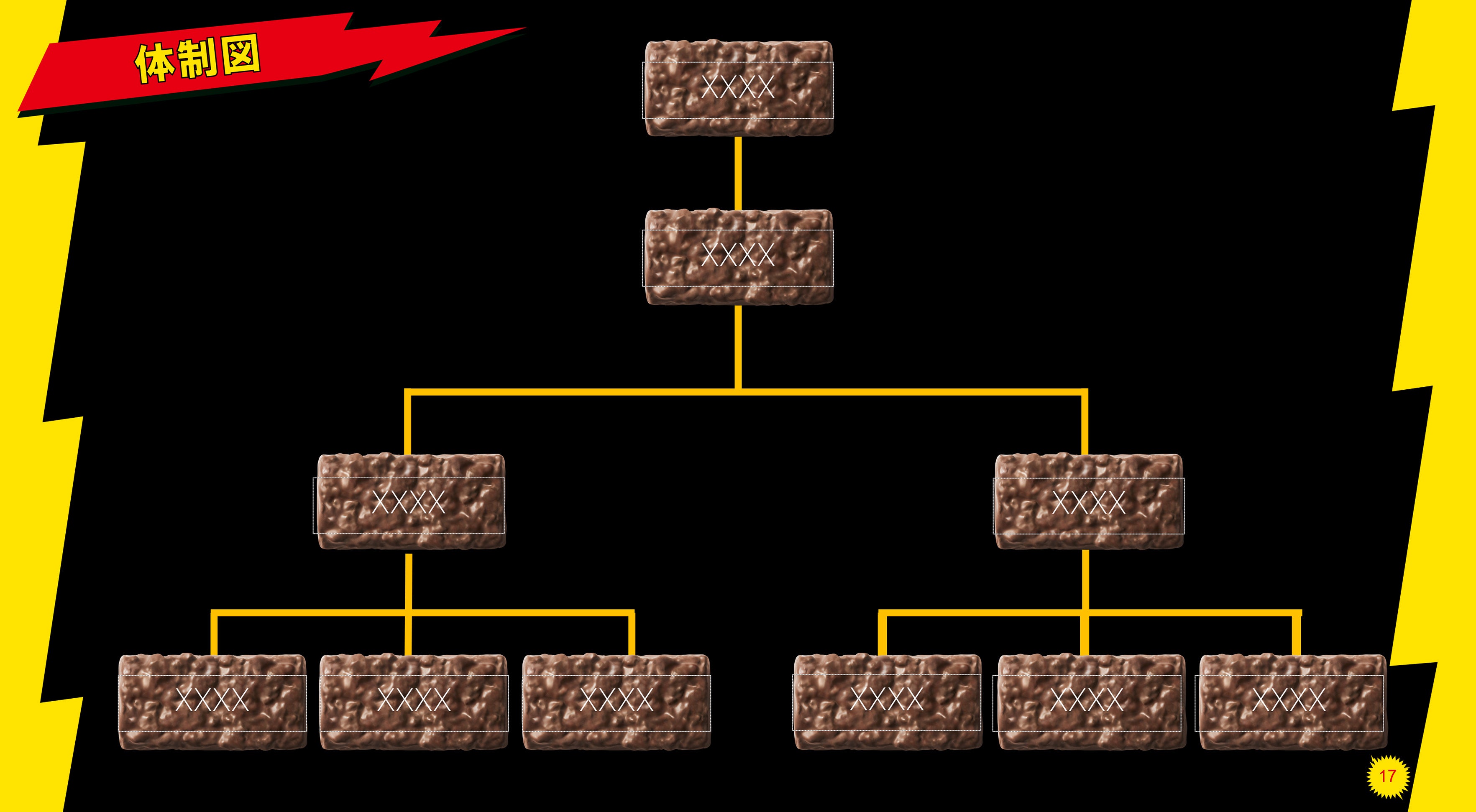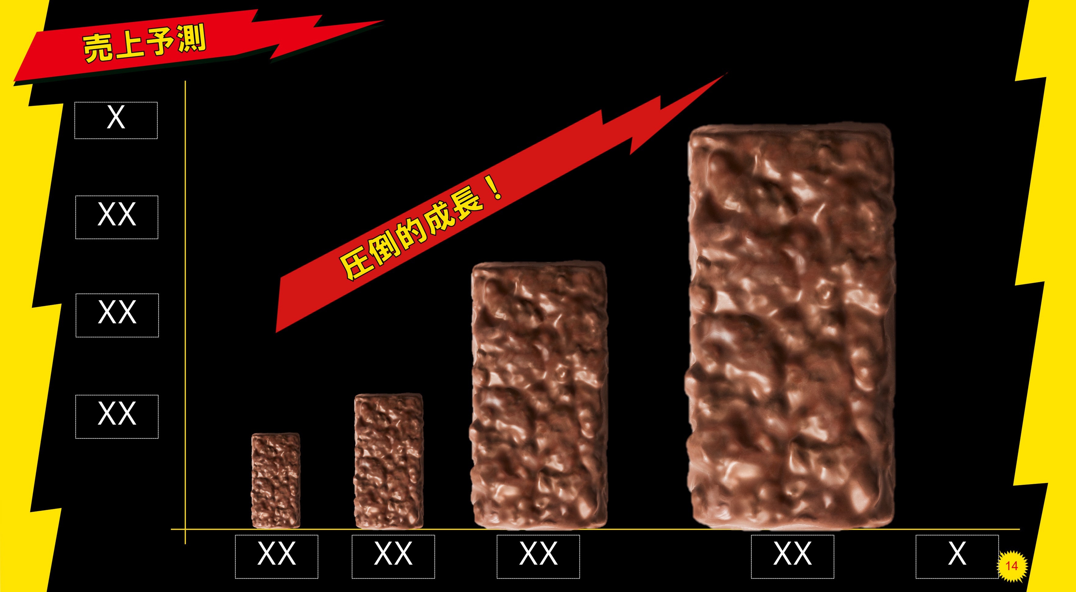 ブラックサンダーをモチーフに、さまざまなシーンでご活用いただける全18ページのパワーポイントテンプレートをご用意いたしました。表紙はブラックサンダーのパッケージをイメージした、インパクトのあるデザインに仕上げています。