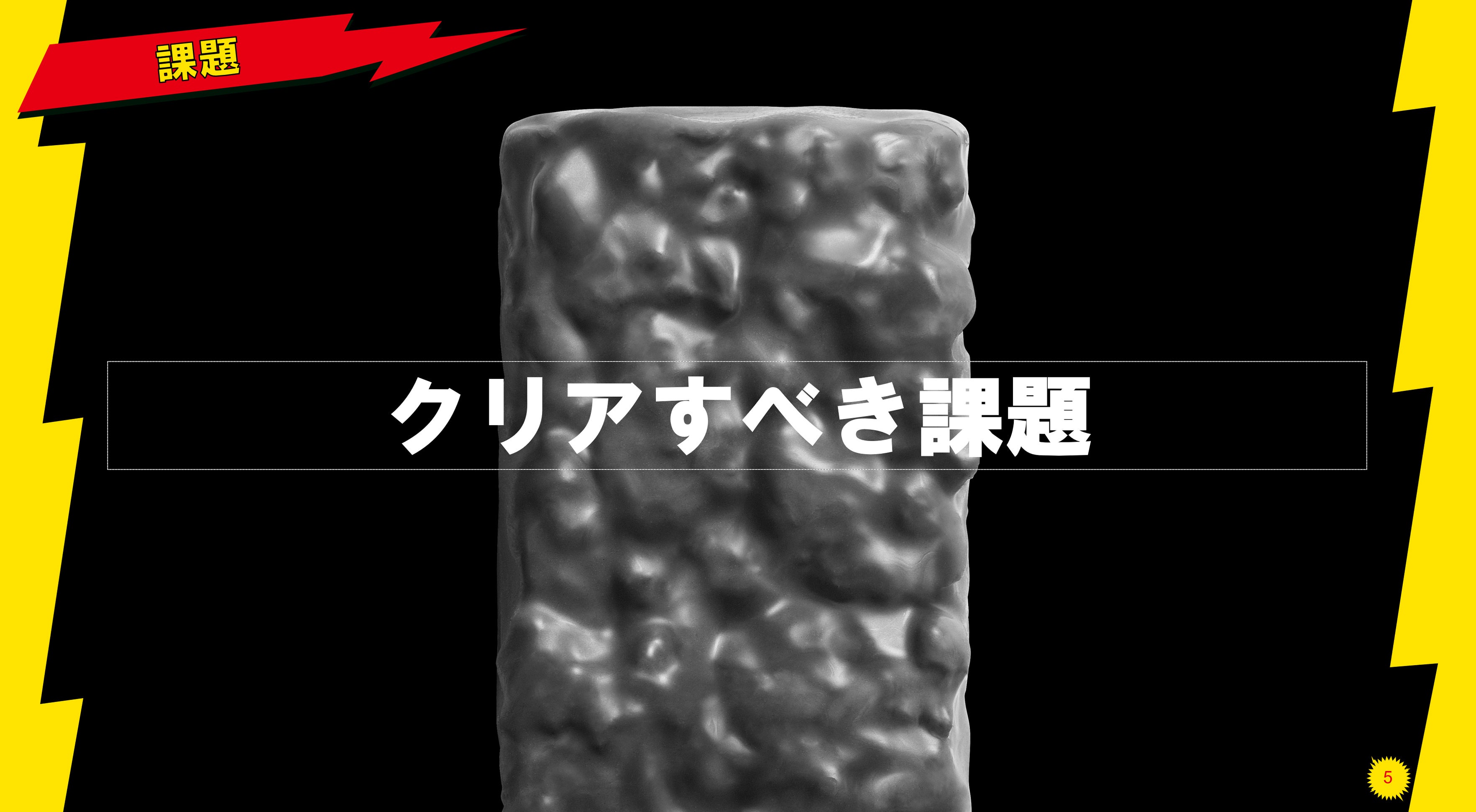 仕事において、提案やプレゼンテーションの場面で欠かせないのが資料作成。定型資料が求められることも多い一方で、時にはインパクトや意外性が、聞き手の心をつかむ武器になることもあります。そこで今回、ブラックサンダーが持つ“おいしさイナズマ級”のインパクトと、遊びゴコロあふれるブランドイメージを活かしたオリジナルのパワーポイントテンプレートを制作しました。これにより、提案の場が少しでも明るく、自由で創造的なものになることを目指しています。