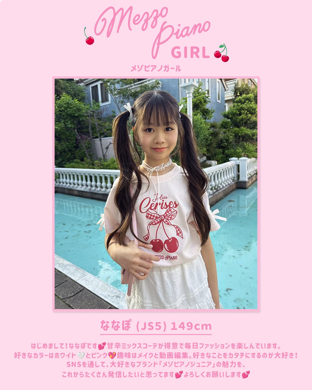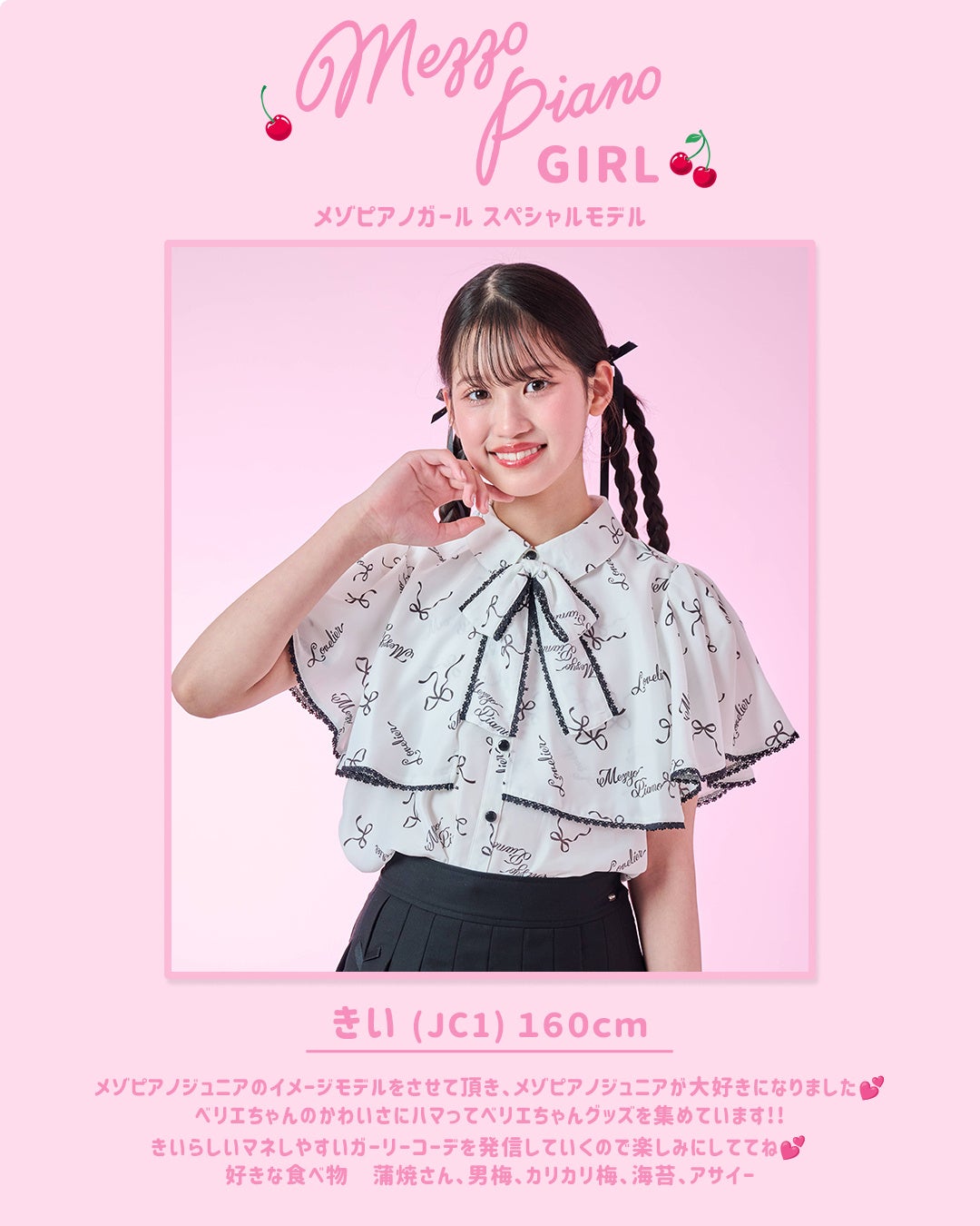 「将来はメゾピアノジュニアさんで働く事が夢になりました♡」というコメントに、スタッフ一同感激…!ブランドへの愛がたっぷり詰まった、甘くてガーリーな着こなしが魅力。