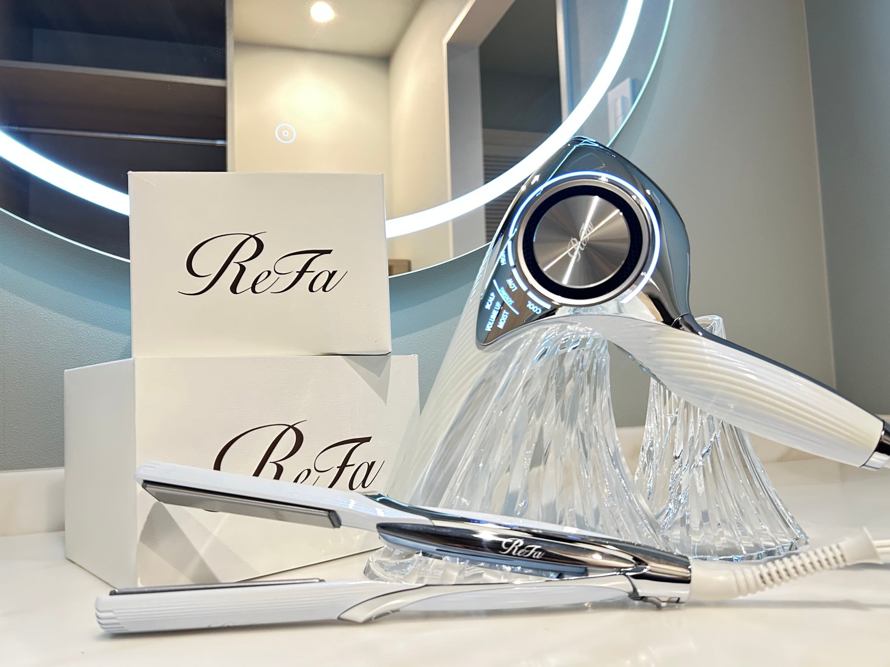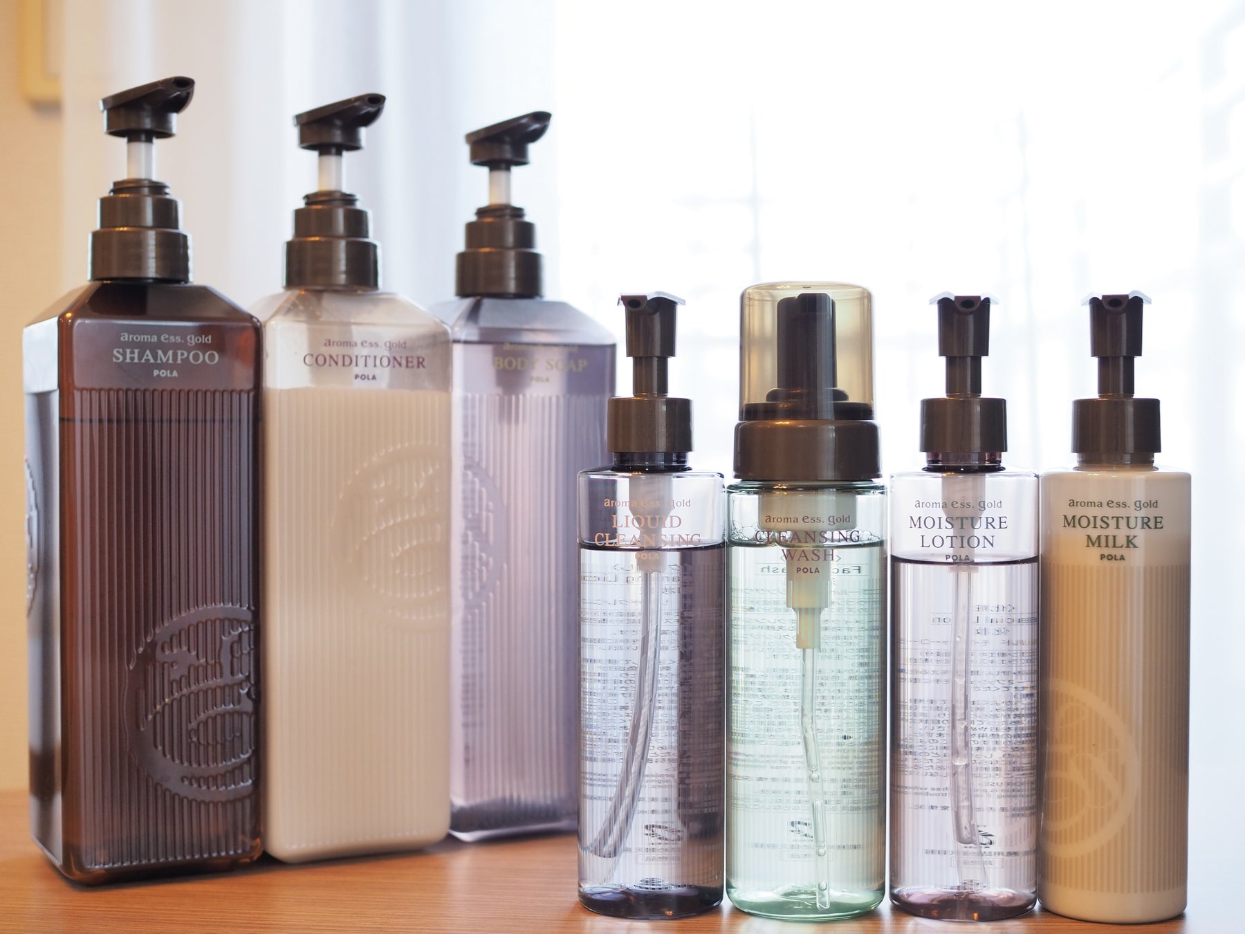 バスアメニティにはPOLAアロマエッセゴールドシリーズを採用いたしました。クレンジングオイルやローションも揃えており、お客様は“手ぶらでご宿泊”が可能です。アロマエッセゴールドシリーズは、7種の精油をバランスよく配合した紅茶を思わせるやわらかな香りが特徴です。自然由来の4つのゴールデンエキスを配合した上質なアイテムで、リラックスしたバスタイムをご体験ください。また、髪に優しいマイナスイオンヘアドライヤーと、便利で嬉しいヘアアイロンも全室に常備しております。