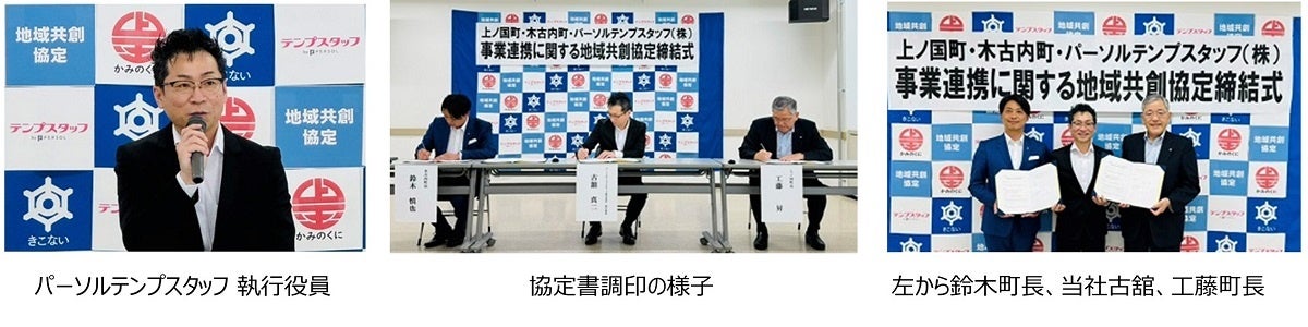 総合人材サービスのパーソルグループで人材派遣・アウトソーシング事業を手掛けるパーソルテンプスタッフ株式会社(本社: 東京都渋谷区、代表取締役社長: 木村 和成、以下パーソルテンプスタッフ)と北海道上ノ国町(町長: 工藤 昇氏、以下上ノ国町)と北海道木古内町(町長: 鈴木 慎也氏、以下木古内町)は、地方創生や地域課題の解決に向けて3者連携し、魅力ある町づくりを実現することを目的とする「事業連携に関する地域共創協定」を2024年7月1日(月)締結、調印式を執り行いましたので、お知らせします。