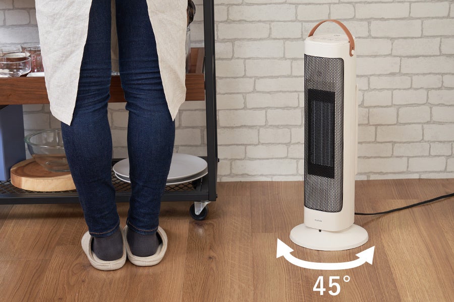 1200Wのハイパワーと左右自動首振り機能がお部屋全体に温風を送り、寒い日もすぐ快適に。