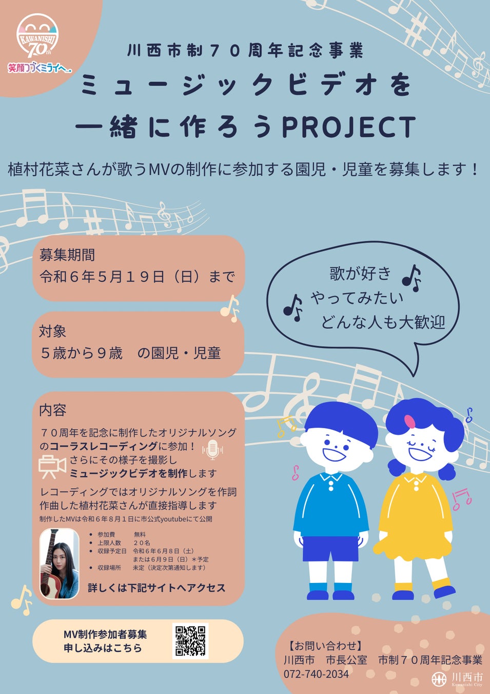 オリジナルソングのミュージックビデオ制作に参加する児童・園児(5歳から9歳)を募集します。