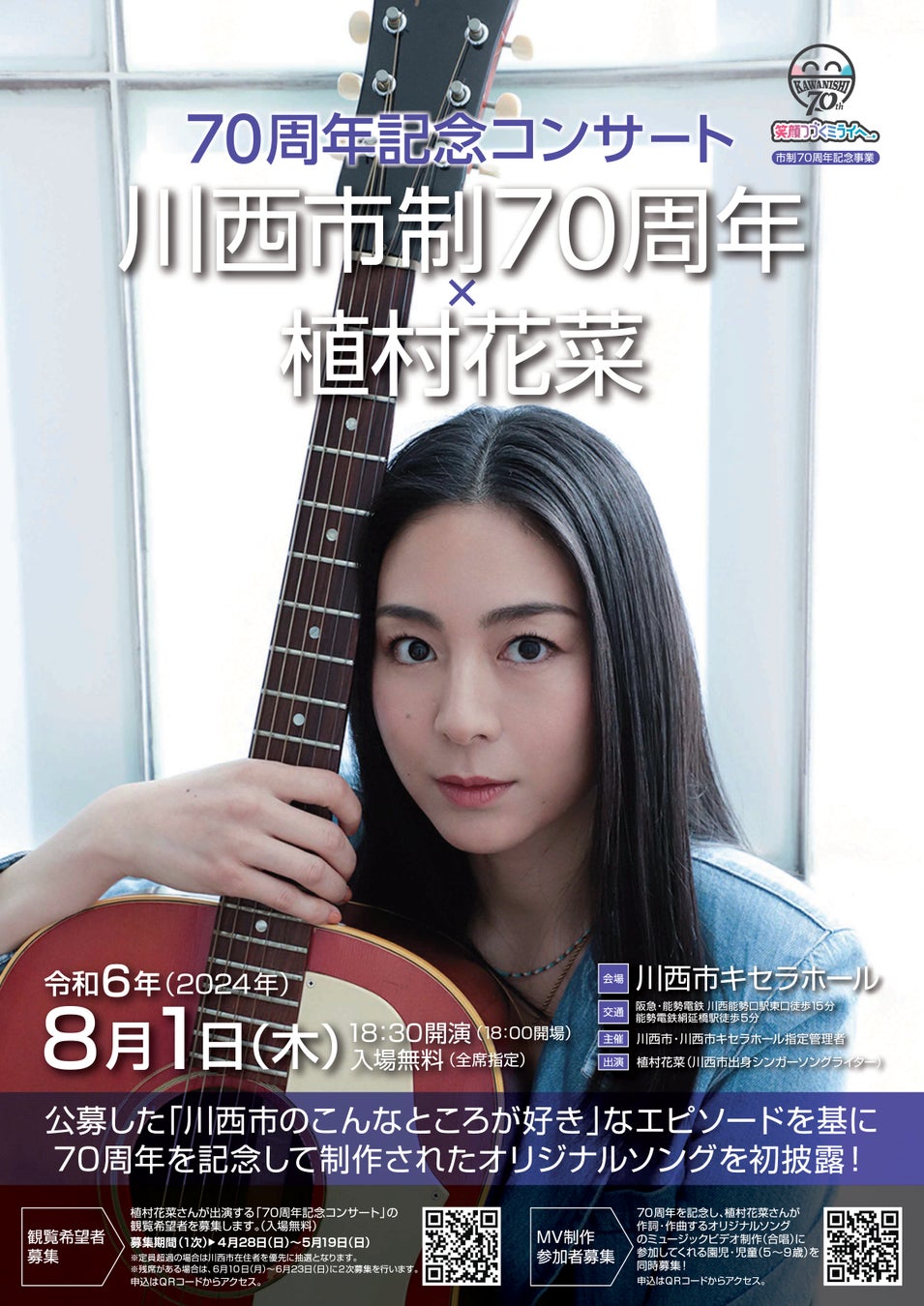 市制70周年を記念して、市出身のシンガーソングライター植村花菜さんによるコンサートを開催します。