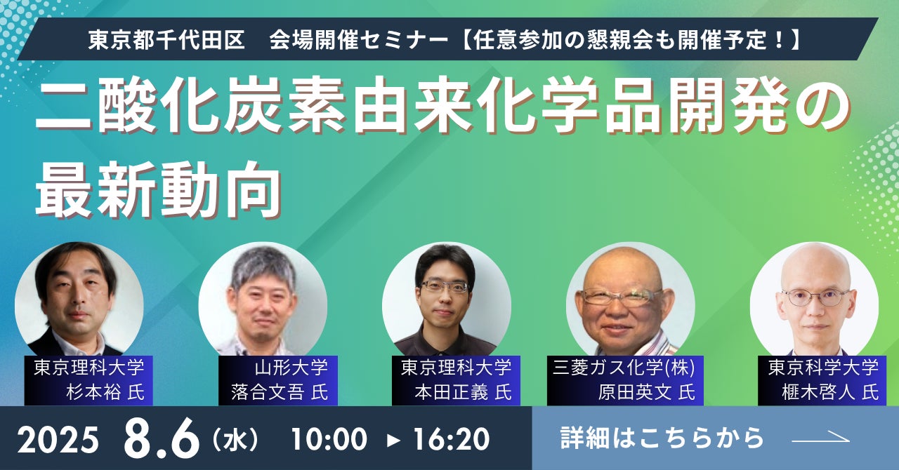 終了後は懇親会有り!CO2を有効活用する時代の今、CO2からつくる化学品の可能性と技術について5名の専門家が一挙解説!「二酸化炭素由来化学品開発の最新動向」セミナーを8/6に会場開催!