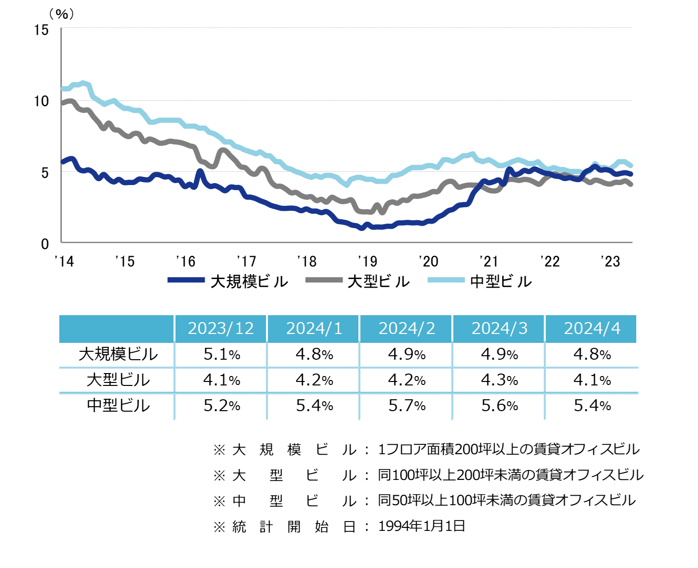 <空室率の推移(6大都市 大規模ビル)>
