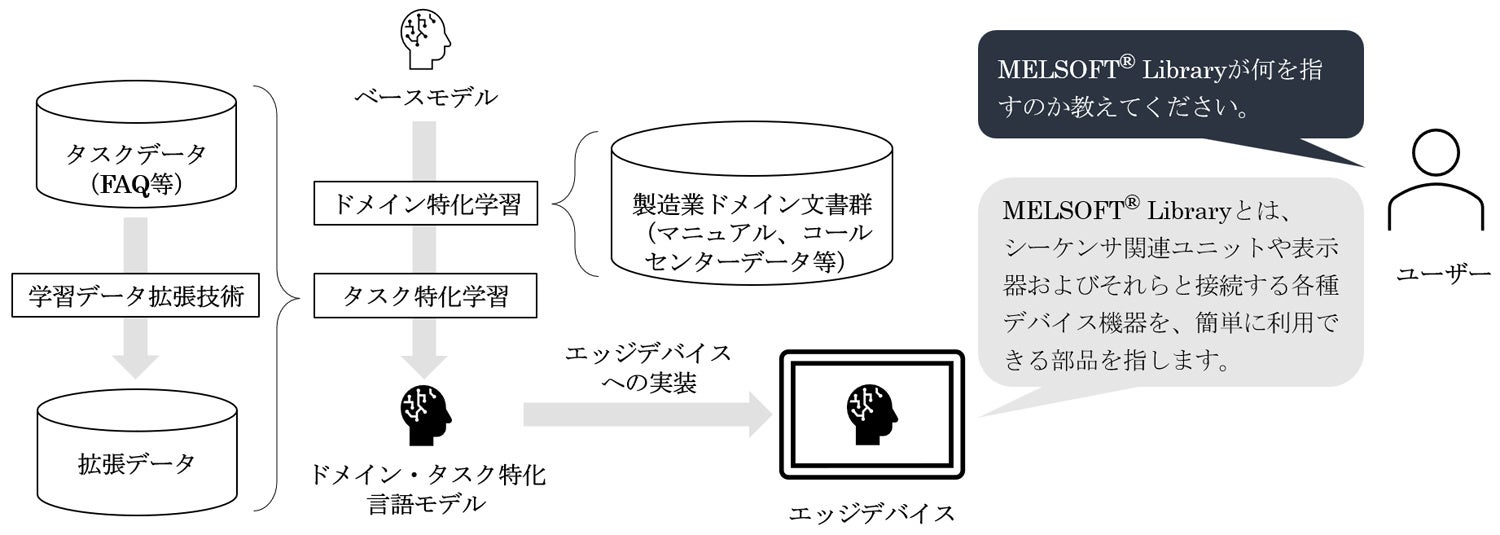 三菱電機株式会社は、エッジデバイスで動作する製造業向け言語モデルを開発しました。当社AI技術「Maisart®(マイサート)(※1)」の開発成果である本言語モデルは、当社事業に関するデータを用いて製造業ドメインに特化した事前学習をさせており、製造業におけるさまざまなユースケースへの適用が可能です。さらに、独自に開発した学習データ拡張技術により、ユーザーの用途に最適化した回答生成を実現します。