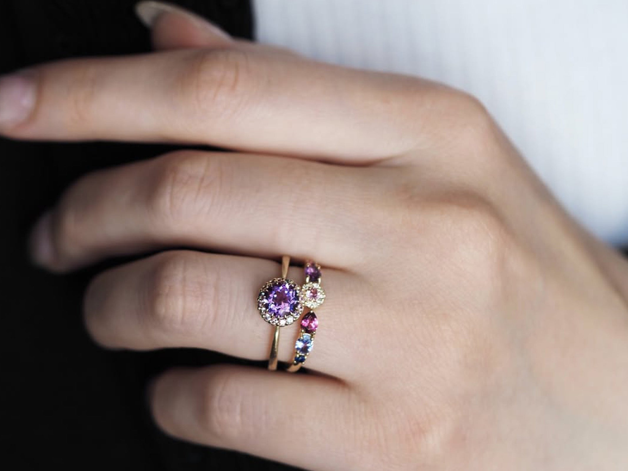 12か月それぞれに象徴される宝石の色彩と輝きをもとに、取り巻きや地金の色合いを組み立て、デザインごとに仕立てております。