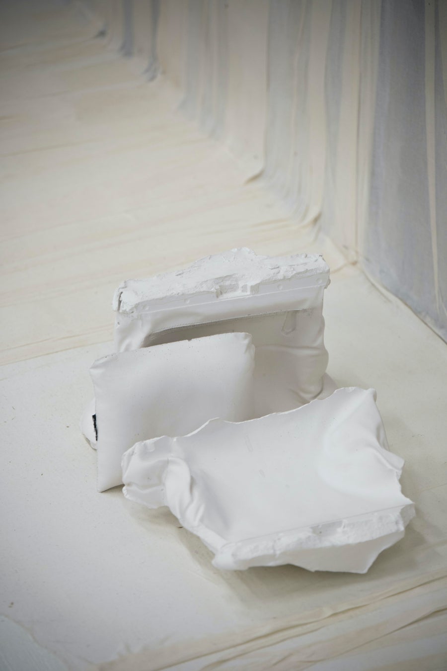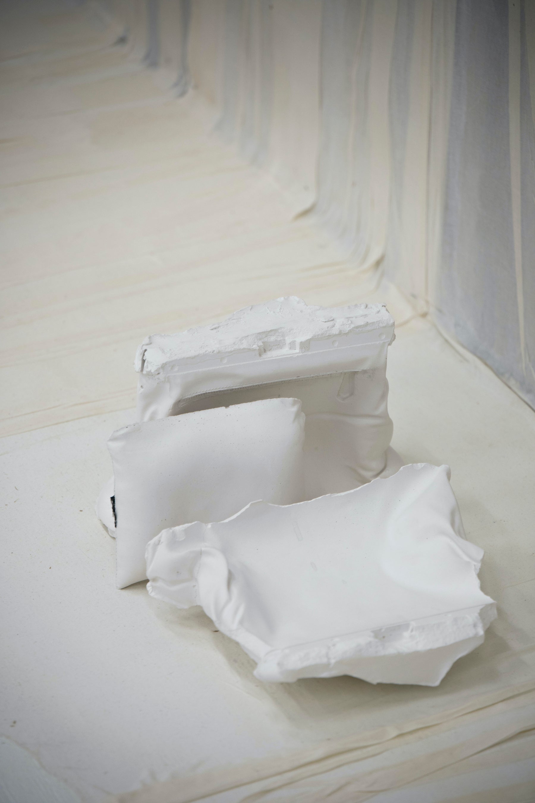 2018年にはオーストリア連邦首相府芸術建築課からヴィーナーマッセ(Wiener Maße)というスチール、石膏カンバスの移動建築物に対して助成金を受けますが、これは言葉を交わすこと、その結果としての時間認識に注目するものです。このインスタレーションは、ロンドンのレイヴン・ロウとRIBAで試されました。これに続いてジャーメイン・ギャラカー(Jermaine Gallacher)のキュレーションにより、ラントストリートで個展を開きます。ルーカスはロックフェラー兄弟財団の資金提供を受け、メキシコのモンテレイで行われた、ペアナの2019年交流プログラムに参加しました。2021年には、ブリュッセルのマニエラ(Maniera)で「ピロー ポートレート」個展を開催しこれが現在も継続中のケーススタディシリーズと家具に描かれている、歴史上の女性たちのウェアラブルなカンバス彫刻の出発点となりました。