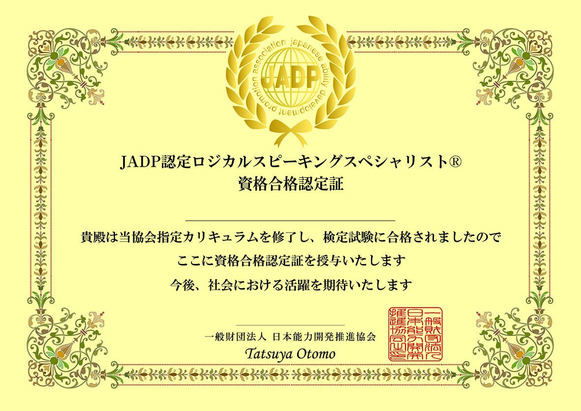■一般財団法人日本能力開発推進協会(JADP) ロジカルスピーキングスペシャリスト資格に対応。