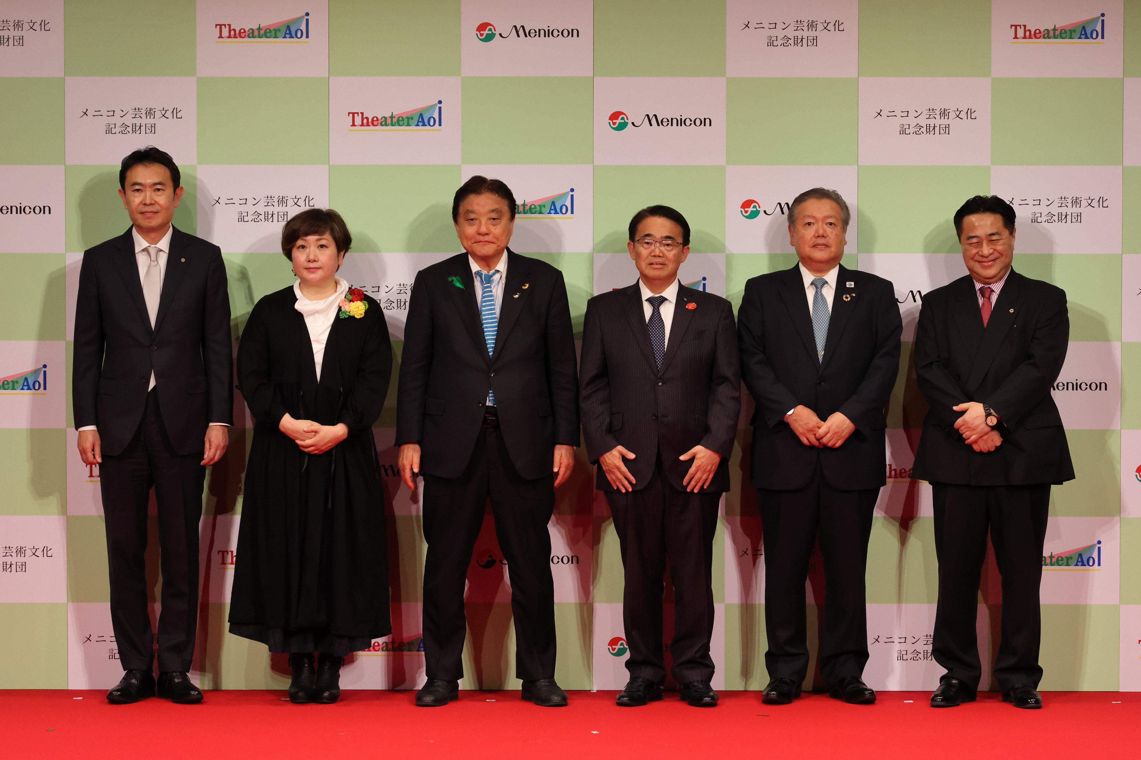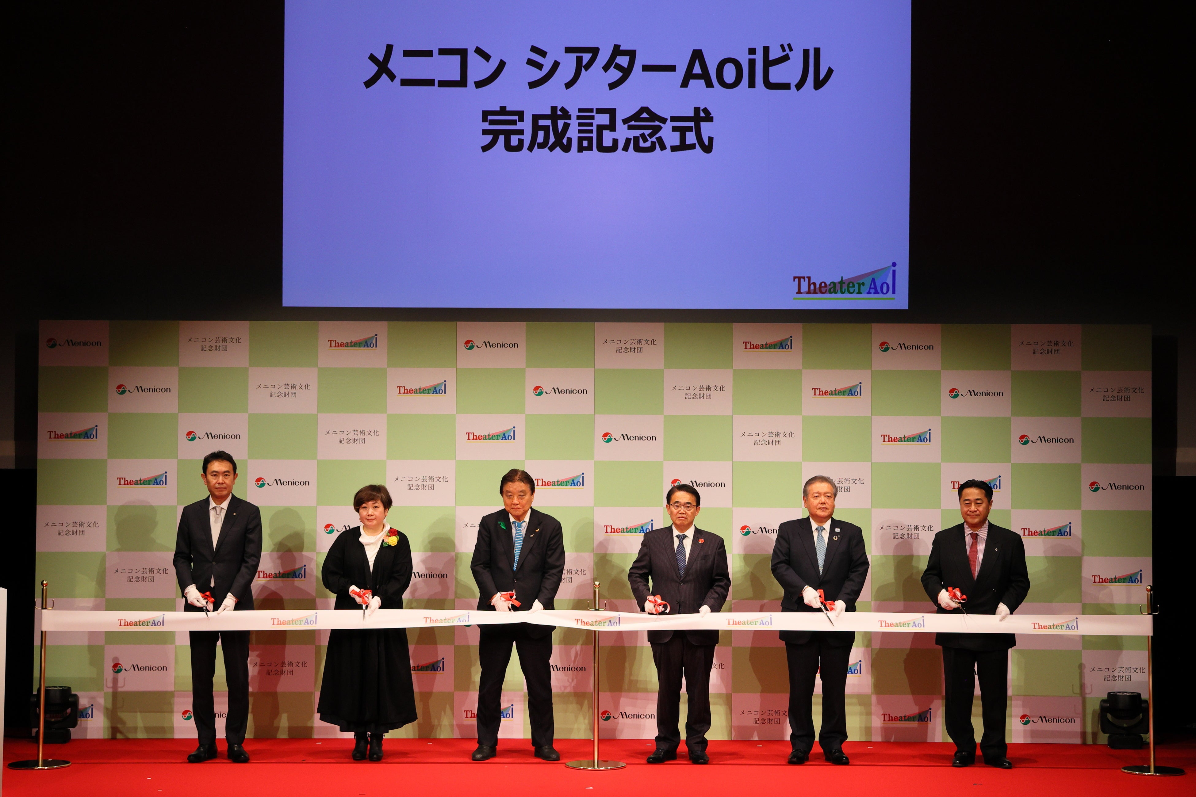 式典には、愛知県大村秀章知事、名古屋市河村たかし市長にご来賓賜り、大村知事からは「メニコン シアターAoiビルがこの地域を代表とする文化施設として優れた人材を輩出するとともに、ここを訪れた方々が感動や思い出を分かち合える場として、末永く親しまれることを心から願っております。」、河村市長からは「メニコン シアターAoiビルをきっかけに名古屋がおもしろくなるように市も応援し、期待しています。」とのお言葉を頂戴いたしました。