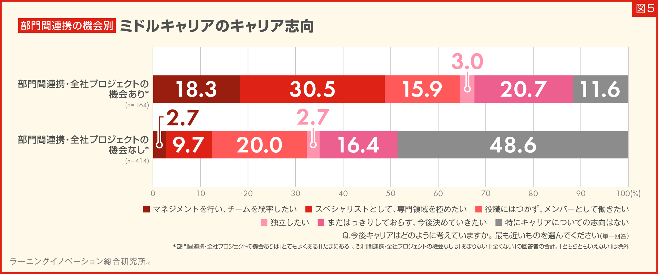 部門間連携の機会があるミドルキャリア、約3割が「専門職志向」と回答、機会がない層の約3倍(図5)