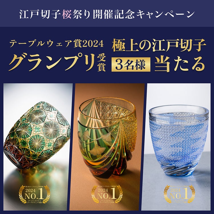 プレゼント賞品は人気江戸切子職人が手がけた3種の極上江戸切子。