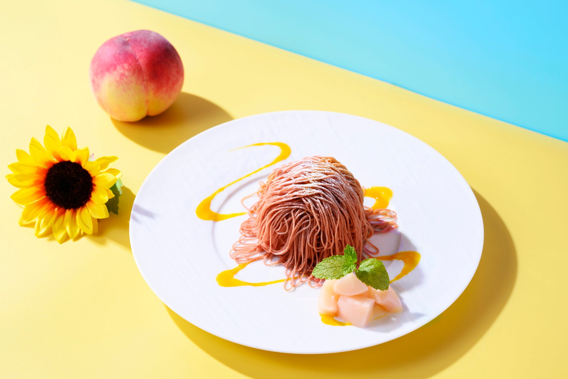 大好評の“生搾りモンブラン”を夏バージョンにリニューアル。自家製バニラアイスと桃のコンポートをマロンクリームで包み、コクのあるマスカルポーネクリームと甘酸っぱいフランボワーズソースを忍ばせ、夏らしい爽やかな味わいに仕上げます。ご注文後に一つひとつ仕上げる贅沢なデザートです。