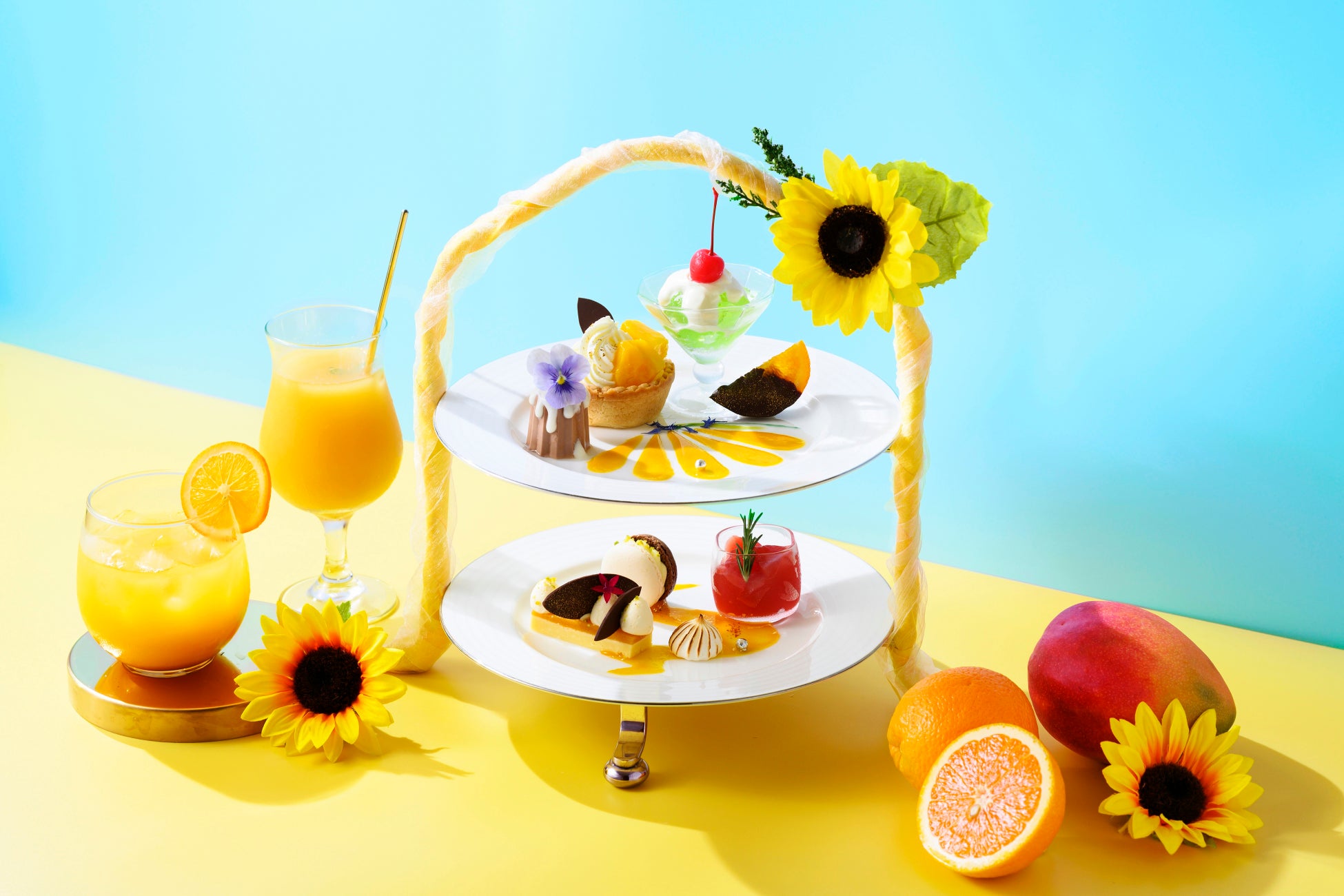 大好評のアフタヌーンティースタンドが夏の装いで新登場。パティシエ特製の「キウイジュレのココナッツソースがけ」「オランジェット」「マンゴーとフロマージュのタルト」「チョコムース」「ベルガモットのメレンゲ」さらには「ブラッドオレンジのジュレ」「パッションフルーツのマカロン」「パイナップルケーキ」をご堪能いただけます。全20種以上のフリーフローと期間限定ドリンクもお得にお楽しみいただけます。数量限定のため、お早めのご予約がおすすめです。