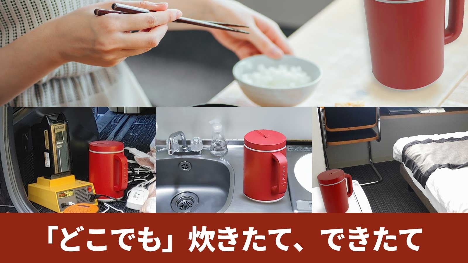 マルチクッカー「ちびっこ」は手のひらに乗ってしまうほどミニサイズ。ワンルームやキッチンがない学生寮、荷物が多くなりやすい車中泊でも電源を確保できたら、そこはパーソナルキッチンに早変わり。食材を入れるだけで、火を使わず簡単に調理できます。