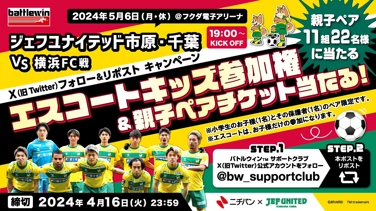 5月6日(月・休)ジェフユナイテッド市原・千葉 対 横浜FC戦「ニチバン バトルウィン(TM) マッチデー」開催記念
