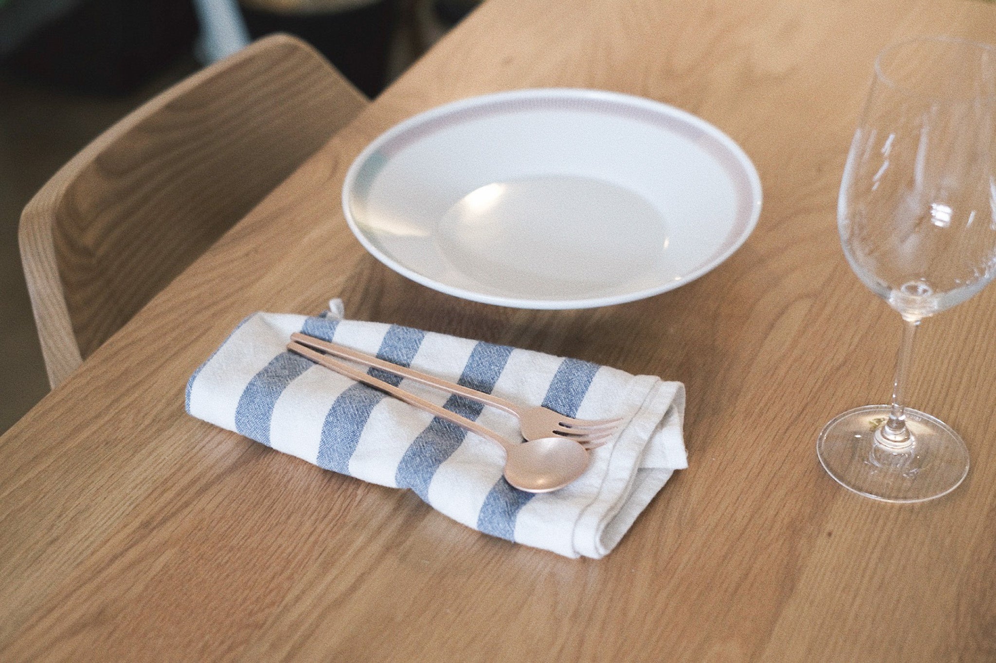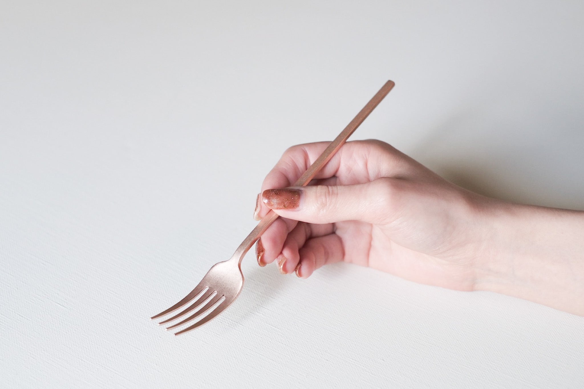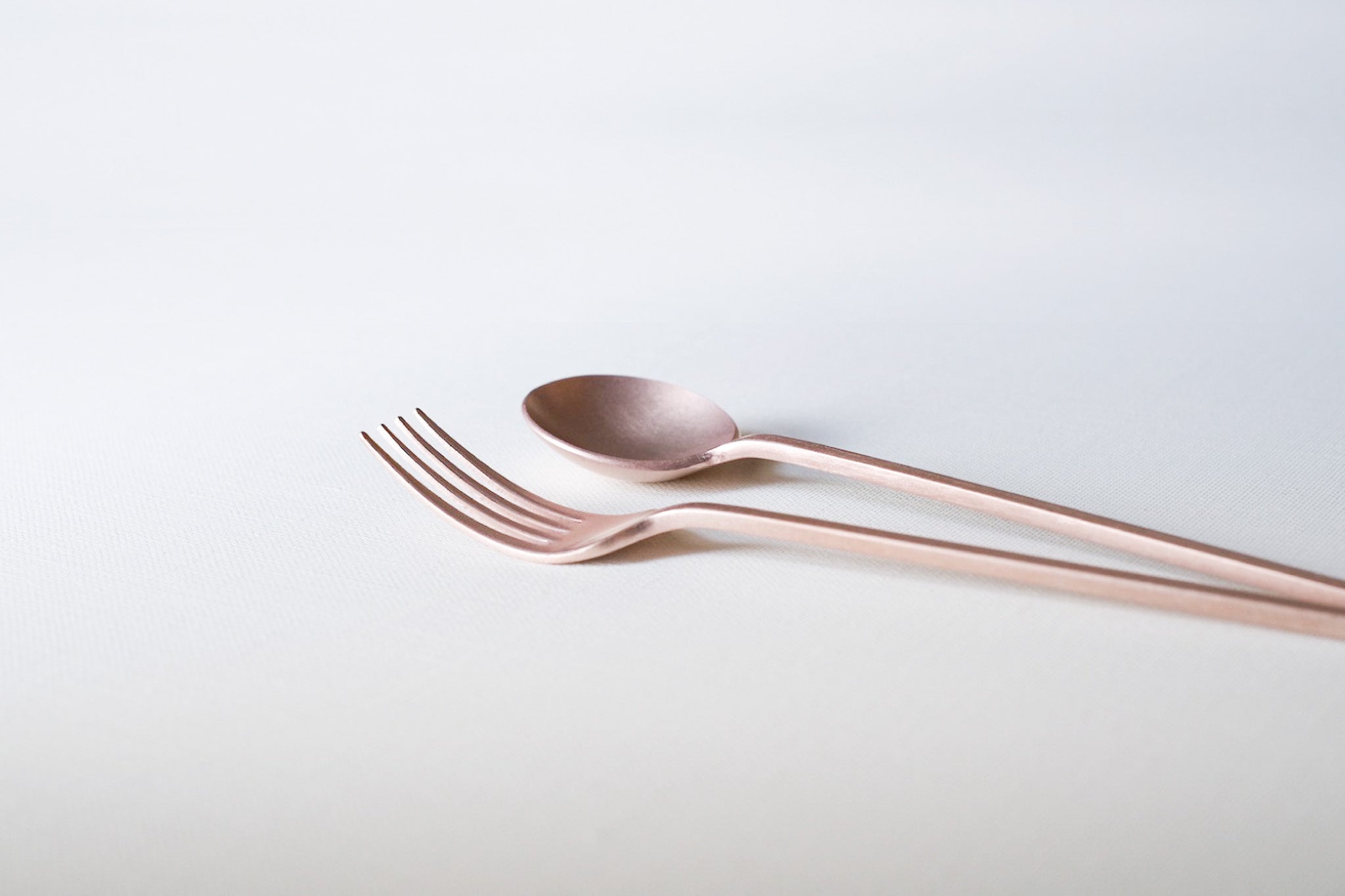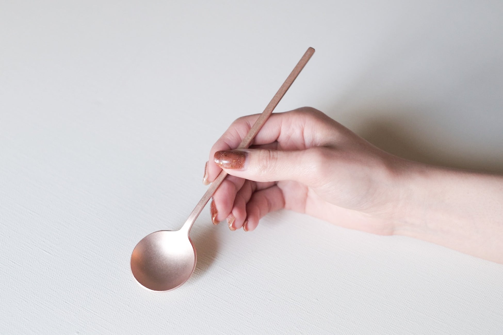 新色のピンクゴールドは、ゴールドよりも馴染みのいい優しいカラー。食卓に優雅で華やかさを添えてくれます。手を添えた時に、自然と所作が美しくなる。そんなカトラリーです。ぜひ限定色も手に取ってみてくださいね。