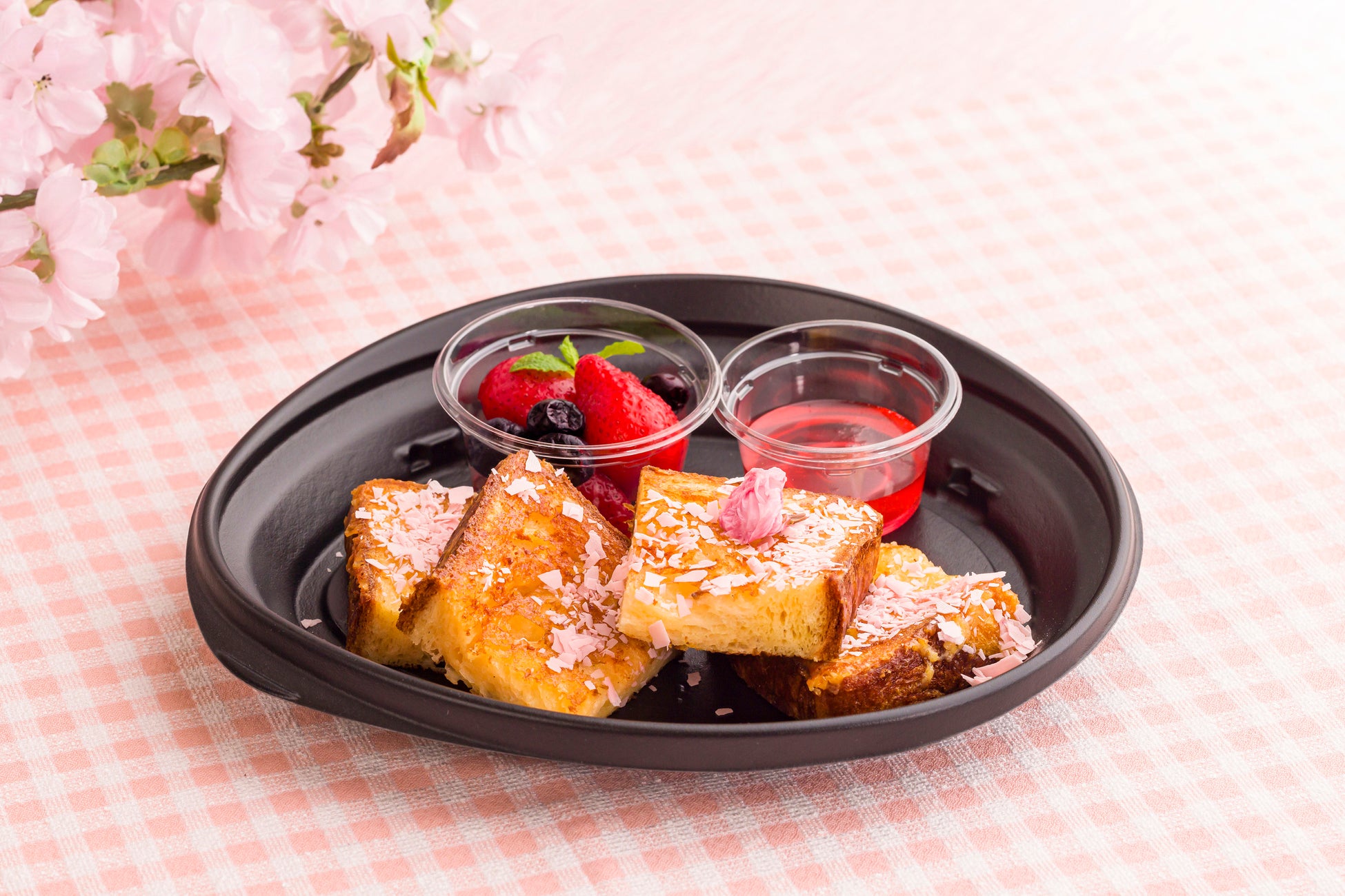 桜の風味を加えた自家製のアパレイユに染み込ませ、ふわとろ食感に仕上げたフレンチトースト。