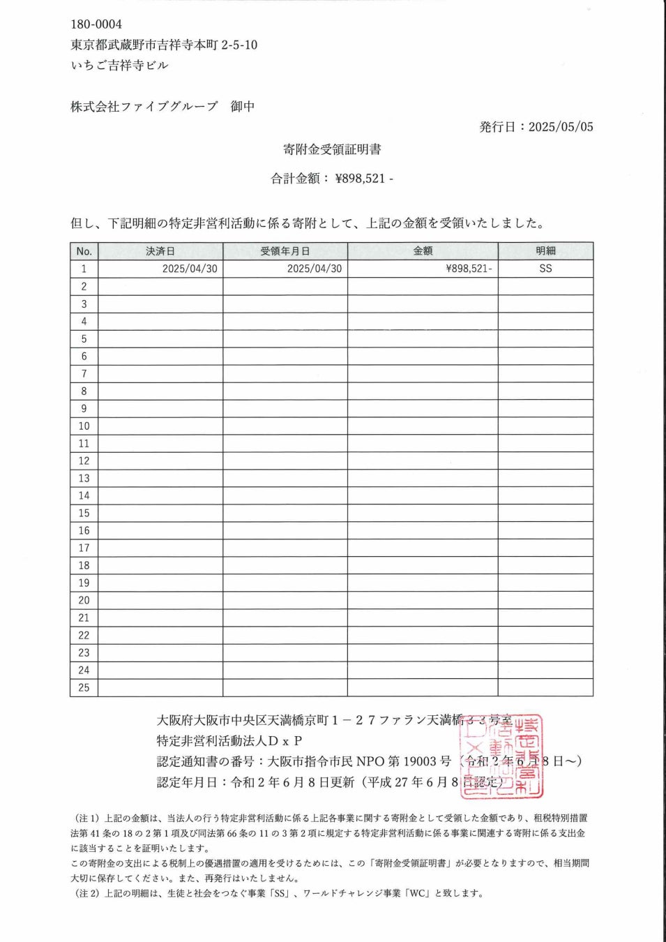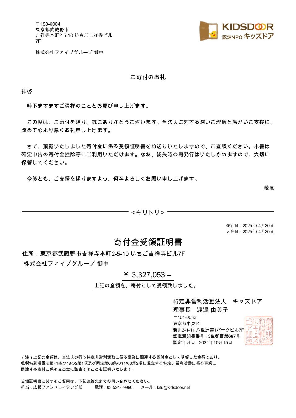 2024年チャリティー活動ご協力のお礼とご報告|株式会社ファイブグループ