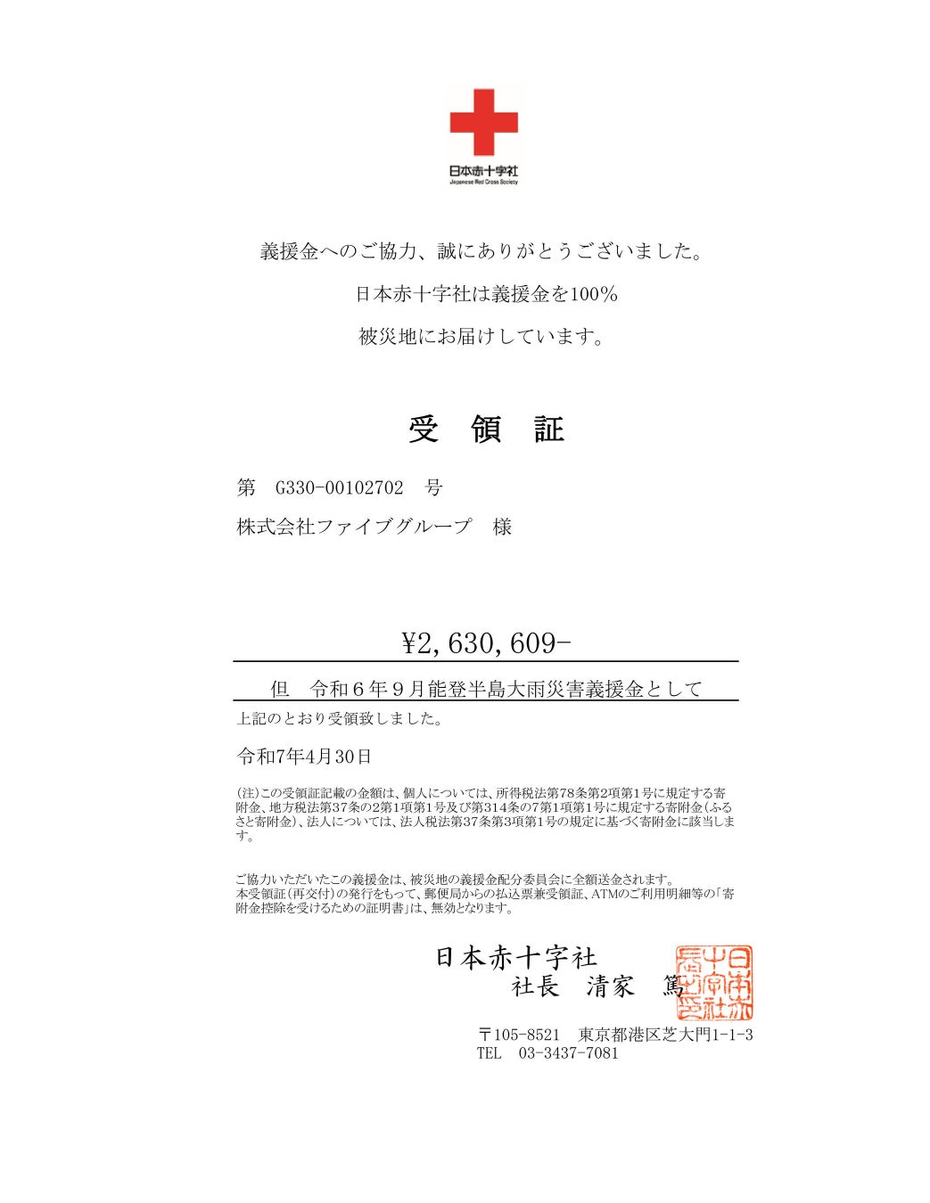 ・日本赤十字/大船渡市林野火災義援金、また能登半島大雨災害義援金として