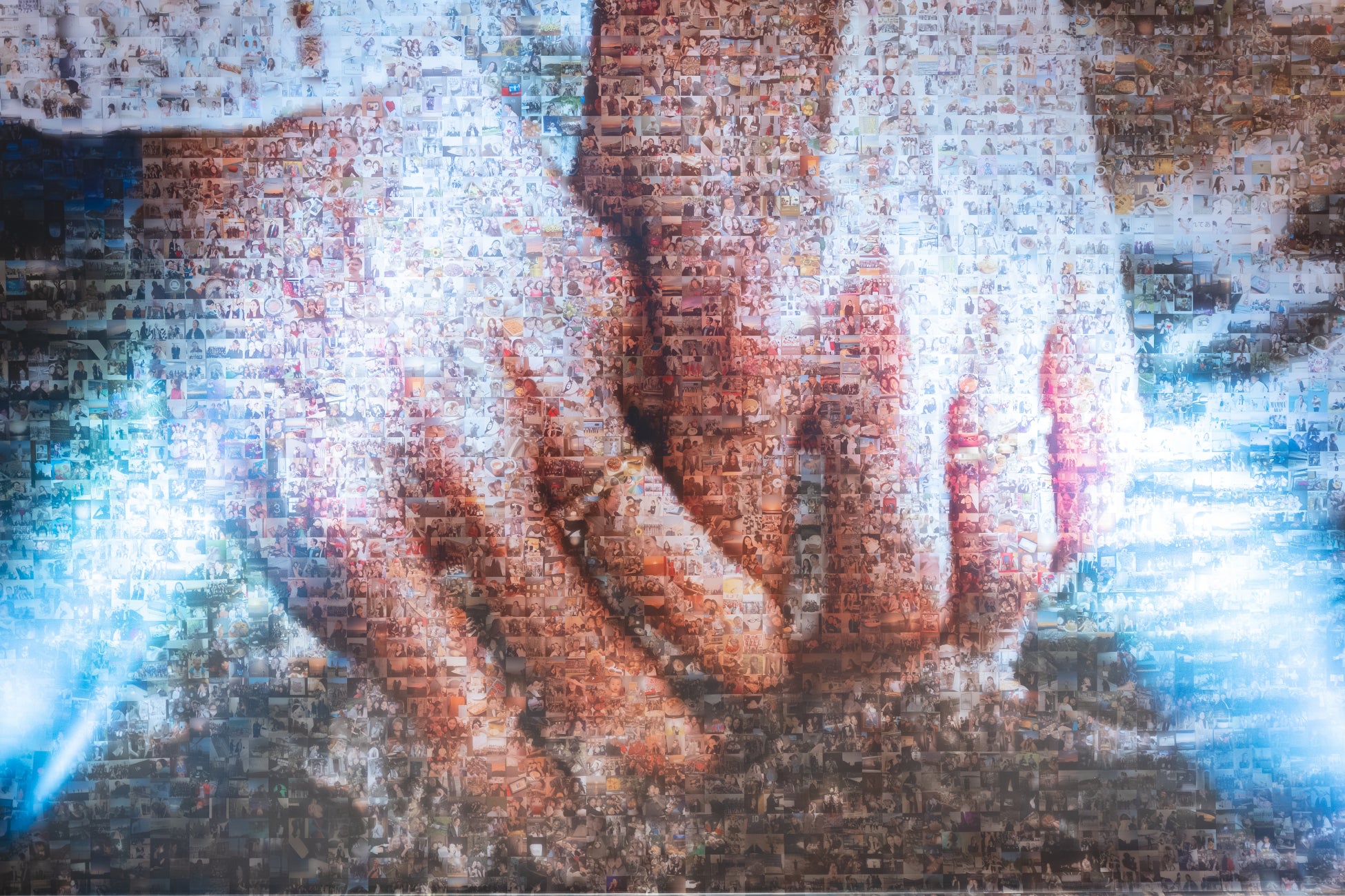 実はここでも希望予算を叶えるための工夫が。「キスの壁」のように1枚1枚パネルを組み合わせて本物の壁をつくると費用が大きくなってしまうためウェディングプランナーは巨大なタペストリーで壁を再現することを考案。制作はゲストも巻き込んで行われ、おふたりとゲストの‟愛を感じる瞬間“を収めた3,500枚にも及ぶ写真を組み合わせて「愛の壁」が完成しました。この「愛の壁」を配置したロビーは、おふたりの思い出にゲストからのたくさんの愛が加わり、おふたりの結婚式を象徴する特別な空間となりました。
