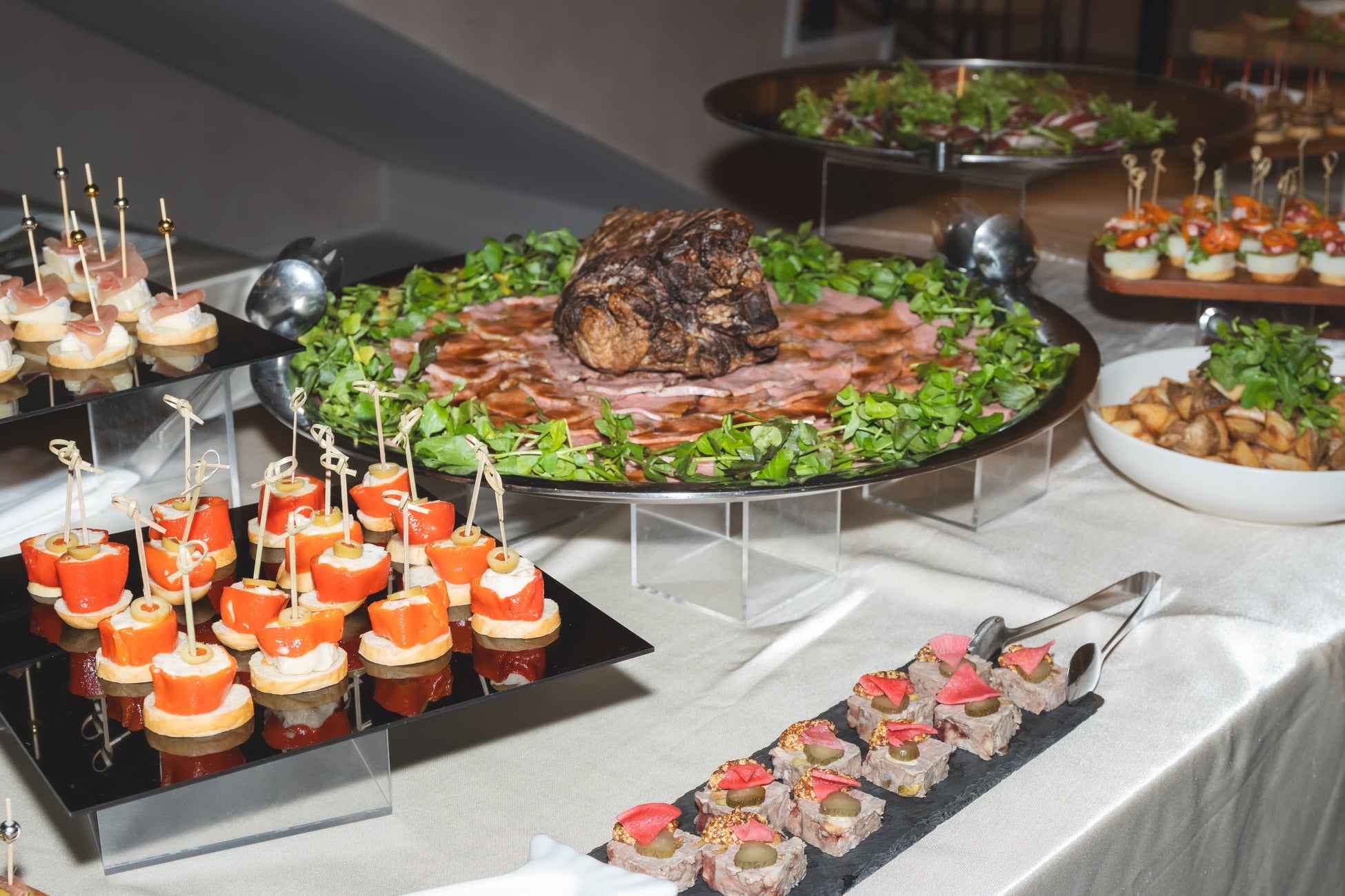 セレモニー後、おふたりが入刀した生ハムはブッフェやアフターパーティにも並び、旅の舞台スペインとおふたりらしさが溢れたユニークなお食事シーンに会場は大盛り上がりでした。