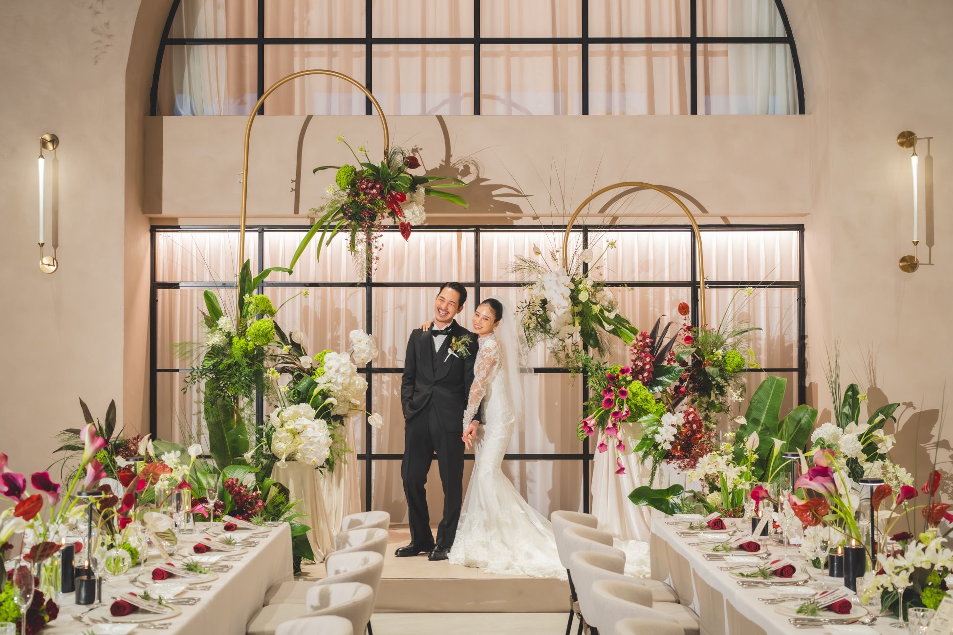 結婚式のコンセプトで最も重視したのは、『さよならプロポーズ via スペイン』でのおふたりの旅を結婚式に映し出すこと。旅の要素を空間演出や進行の至るところに組み込み、おふたりが結婚やその先の人生を考えるきっかけになった瞬間をおふたりとゲストの胸に刻み込めるような日を創り上げていきました。