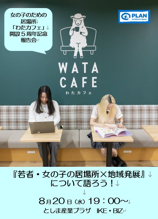 15~24歳の女の子・若年女性の居場所「わたカフェ」開設5周年記念報告会「『若者・女の子の居場所×地域発展』を語ろう」(8月20日(水)としま産業プラザIKE・BIZ )