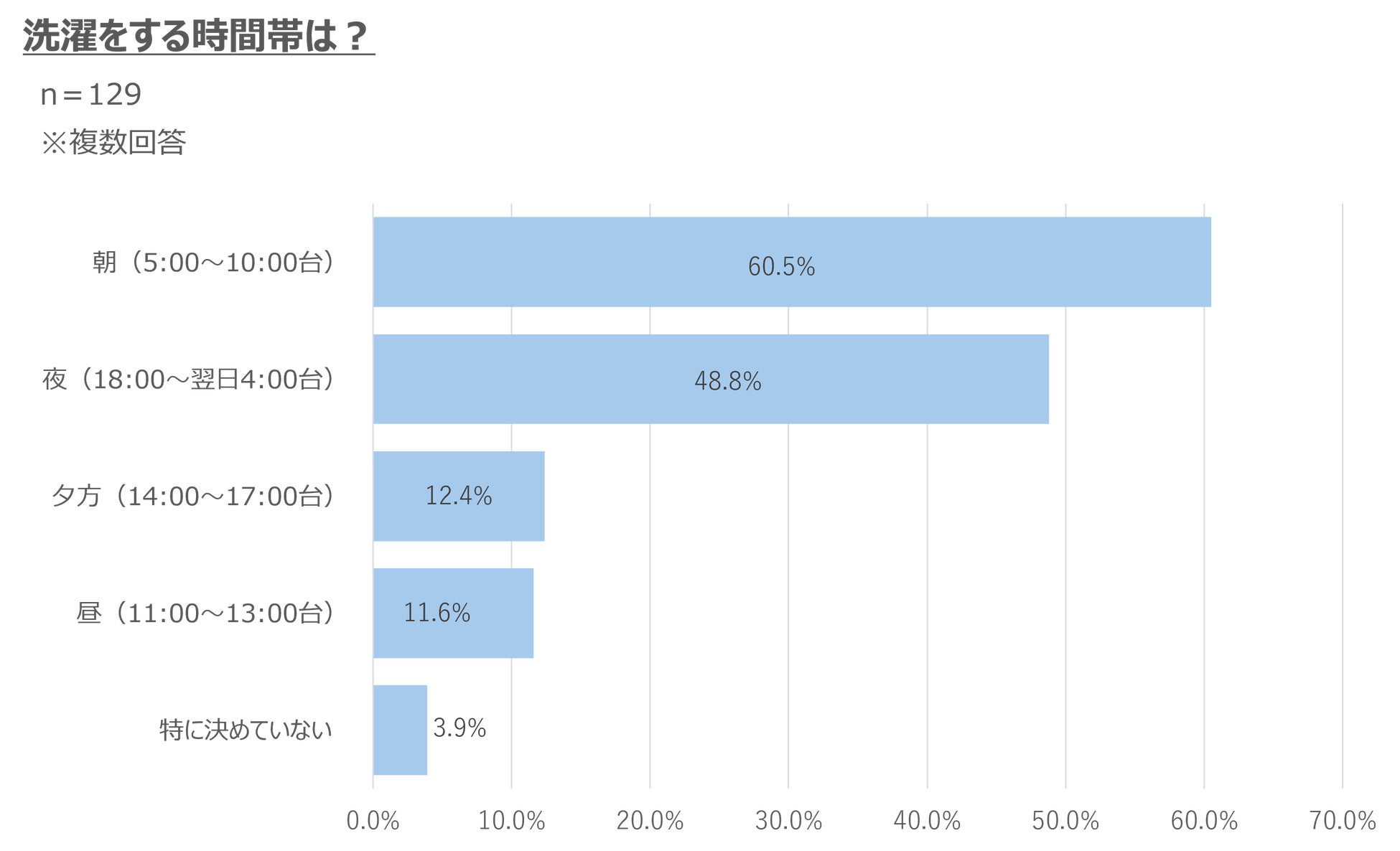 ・洗濯をする時間帯は、朝と夜に多い(朝:60.5%、夜:48.8%) ※複数回答