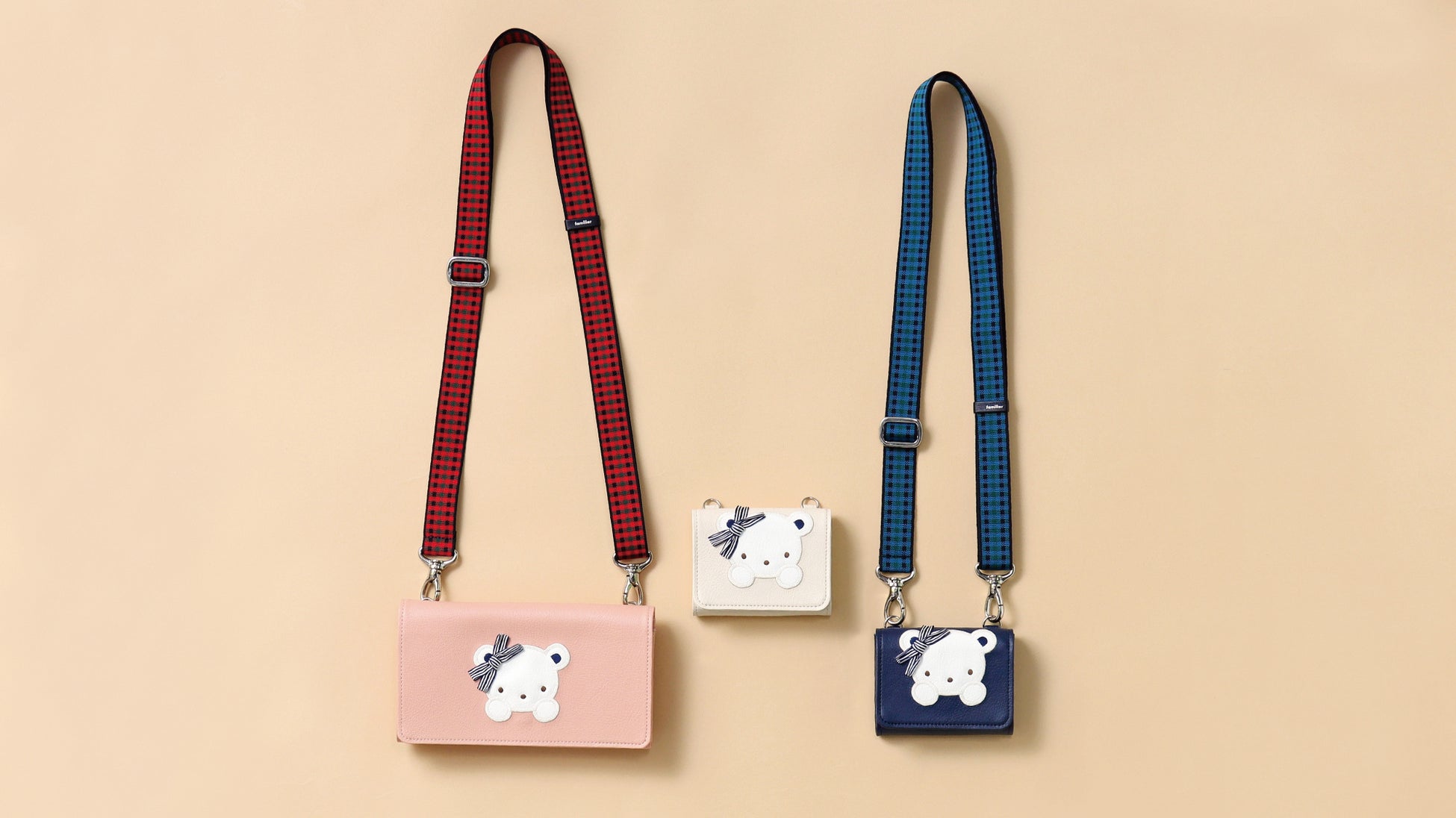 本体生地をアイボリー・ネイビー・ピンクの3 種類から、内生地を赤系ファミリアチェックと青系ファミリアチェックの2 種類から選べるカスタマイズウォレット。 サイズは、収納力が抜群の長財布と、コンパクトで持ち運びに便利なミニ財布をご用意しました。オプションでショルダーストラップを合わせることで、ウォレットショルダーとしてもお使いいただけます。使いやすいカラーリングにかわいらしいアートの組み合わせで、コーディネートのワンポイントとしてもおすすめ。