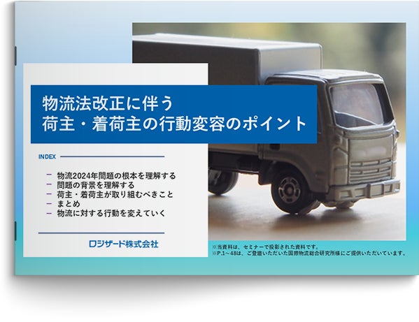 クラウド型在庫管理システムのリーディングカンパニーであるロジザード株式会社(東京都中央区、代表取締役社長:金澤 茂則、以下:ロジザード)は、一般社団法人国際物流総合研究所(東京都中央区、会長:南 元一、以下:国際物流総合研究所)監修のもと、資料『物流法改正に伴う荷主・着荷主の行動変容のポイント』を作成し、無料公開しましたのでお知らせいたします。
