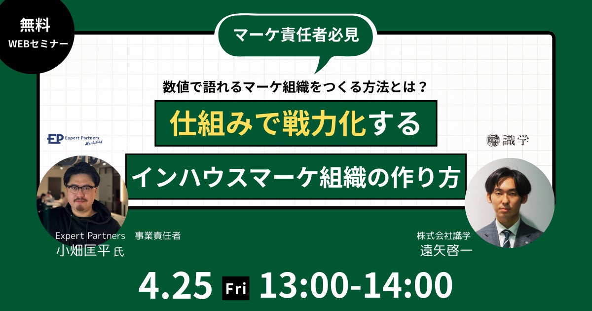 本ウェビナーは、具体的な事例を交えながら限られたリソースの中で成果を最大化させるための具体的なノウハウ、成果を着実に生み出すインハウスマーケティングチームの戦略について解説いたします。Digital Arrow Partnersからは、運営する「Expert Partners Marketing」事業責任者によるマーケティングのプロの観点でインハウスマーケティング組織の作り方のヒントをお届けする予定です。マーケティング戦略、マーケティング組織に課題を感じている企業様はぜひご参加ください。