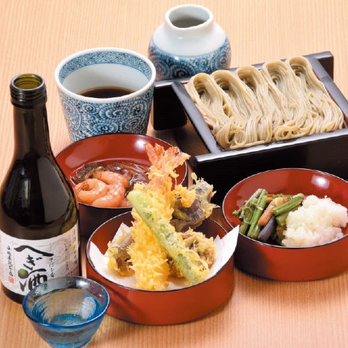 ざるそば+有頭海老天+天ぷら3種(1人前)2,300円(税込)