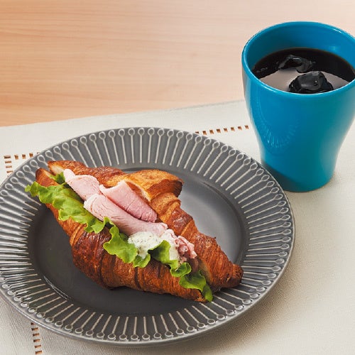 なかよしミートハムとのコラボクロワッサンサンドと雪室珈琲(1人前)1,100円(税込)