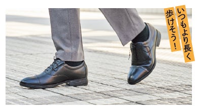 硬さと柔らかさのバランスがよく、履き心地も歩きやすさも圧倒的にイイ! と、プロも太鼓判を押しました。履き心地の良さの理由は幅広で甲高であること。見た目はスリムに見えますが、3E相当で履いてみるとゆったりとした作りになっています。クッションが快適な歩行をサポートしてくれるので、日々の通勤はもちろん、営業先などの外回りが多く長時間歩く人にも特におすすめです。