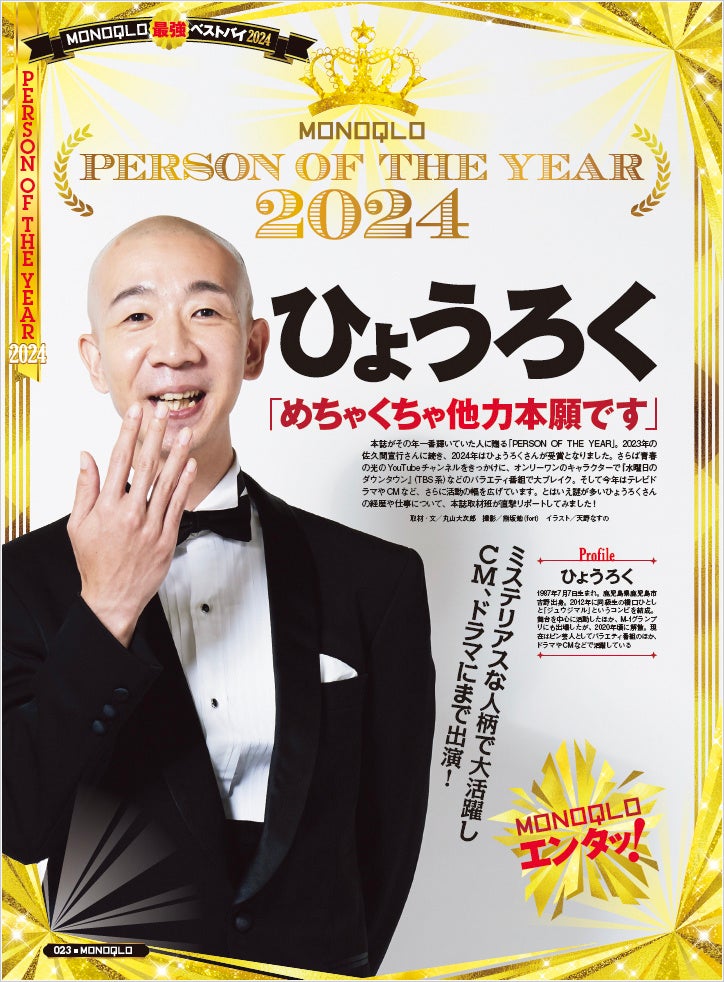 1月号の特集はほかにも、「10大ヒット辛口採点簿」や、「MONOQLOグルメ大賞2024」「メンズビューティー・オブ・ザ・イヤー」「カプセルトイ116製品本音格付け」など、盛りだくさん! ぜひ1月号をチェックしてみてください。
