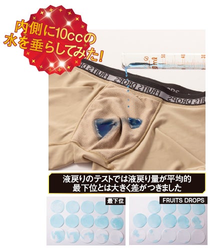 一見するとフツーのボクサーパンツですが、股間部分が4層構造になっており、内側が濡れても表面は肌触りサラサラで見た目にも影響がありません。「防臭力」もプロがパンツの表側から嗅いでみてもニオイがかすかに感じられる程度でした。「履き心地」も「デザイン」も高評価。デリケートな尿漏れ悩みを解消してくれる、心強いパートナーになってくれること間違いなしです。