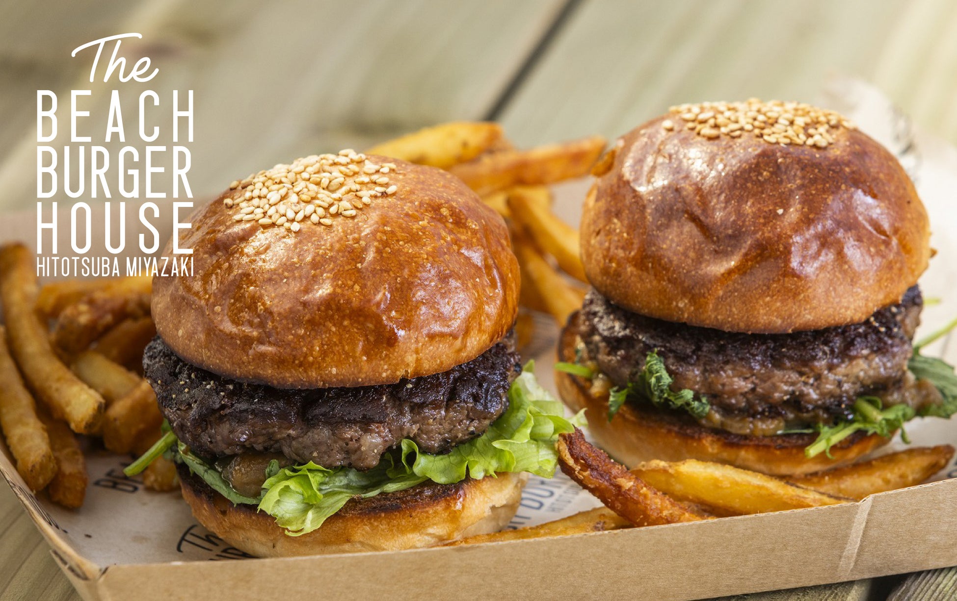 【The BEACH BURGER HOUSE】宮崎牛100%!美味しさを二人で分かち合う贅沢バーガー「宮崎牛のツインスライダー」