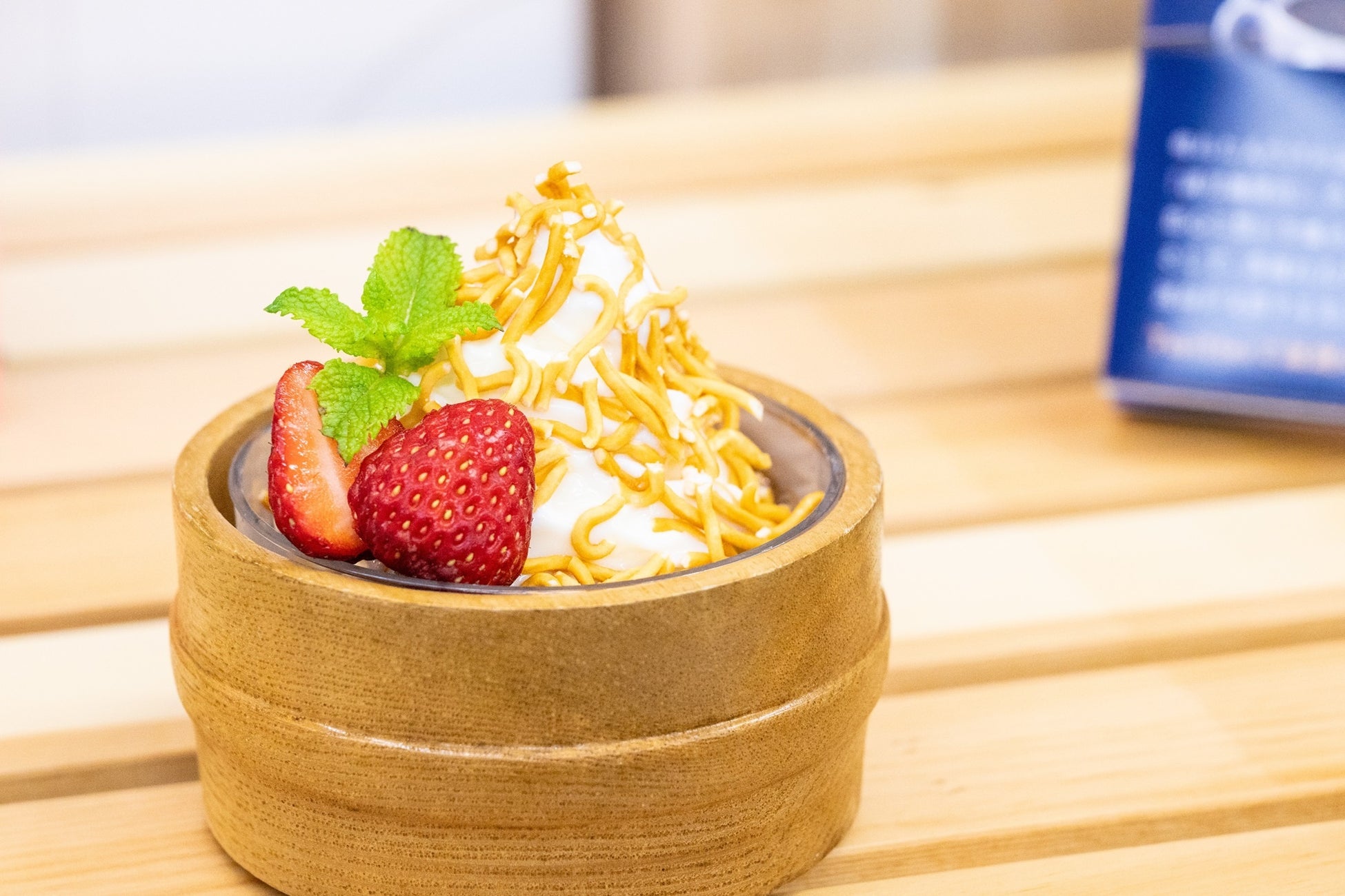 南信州産のアイスとベビースターラーメンを合わせて作った甘じょっぱさがくせになる1品。