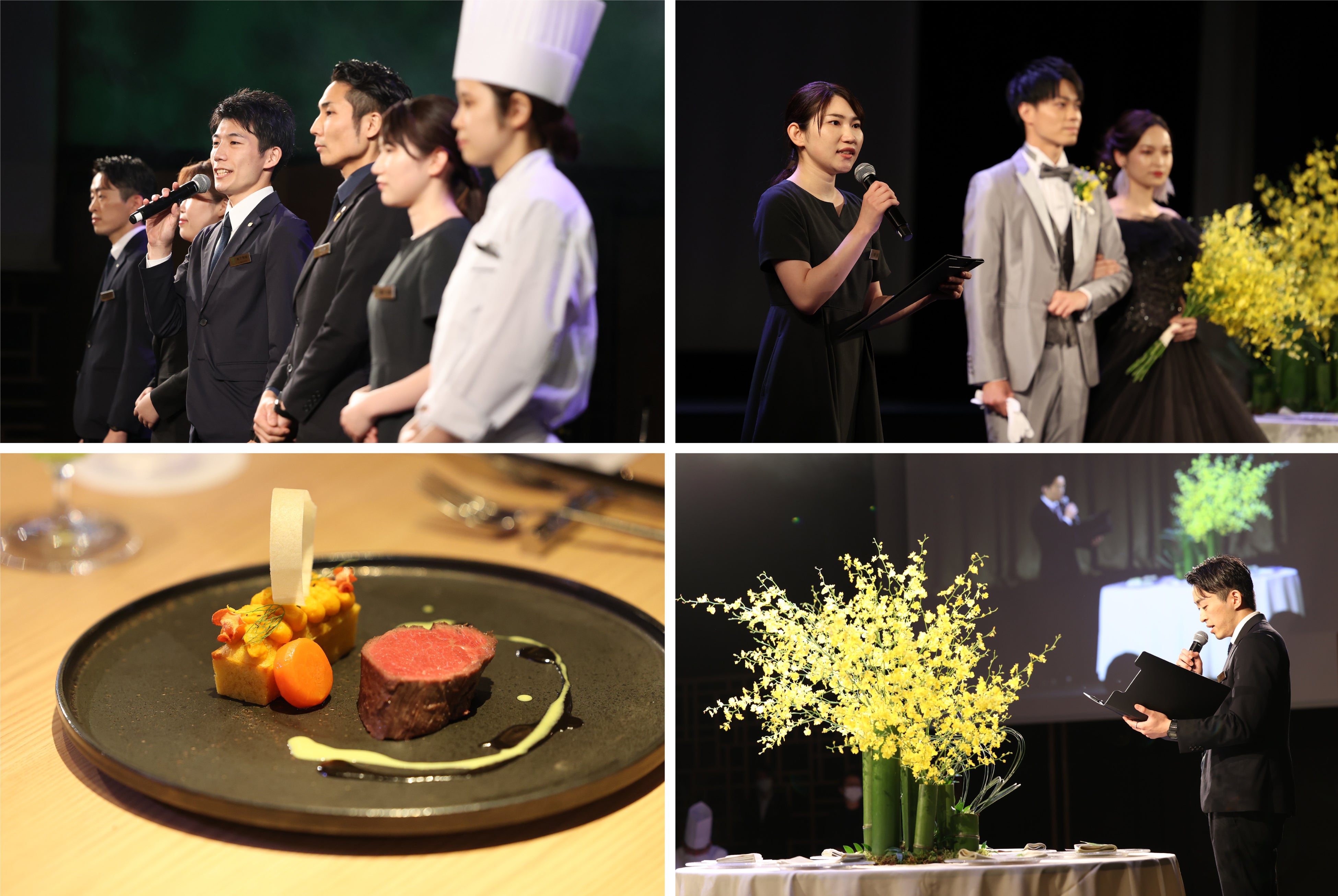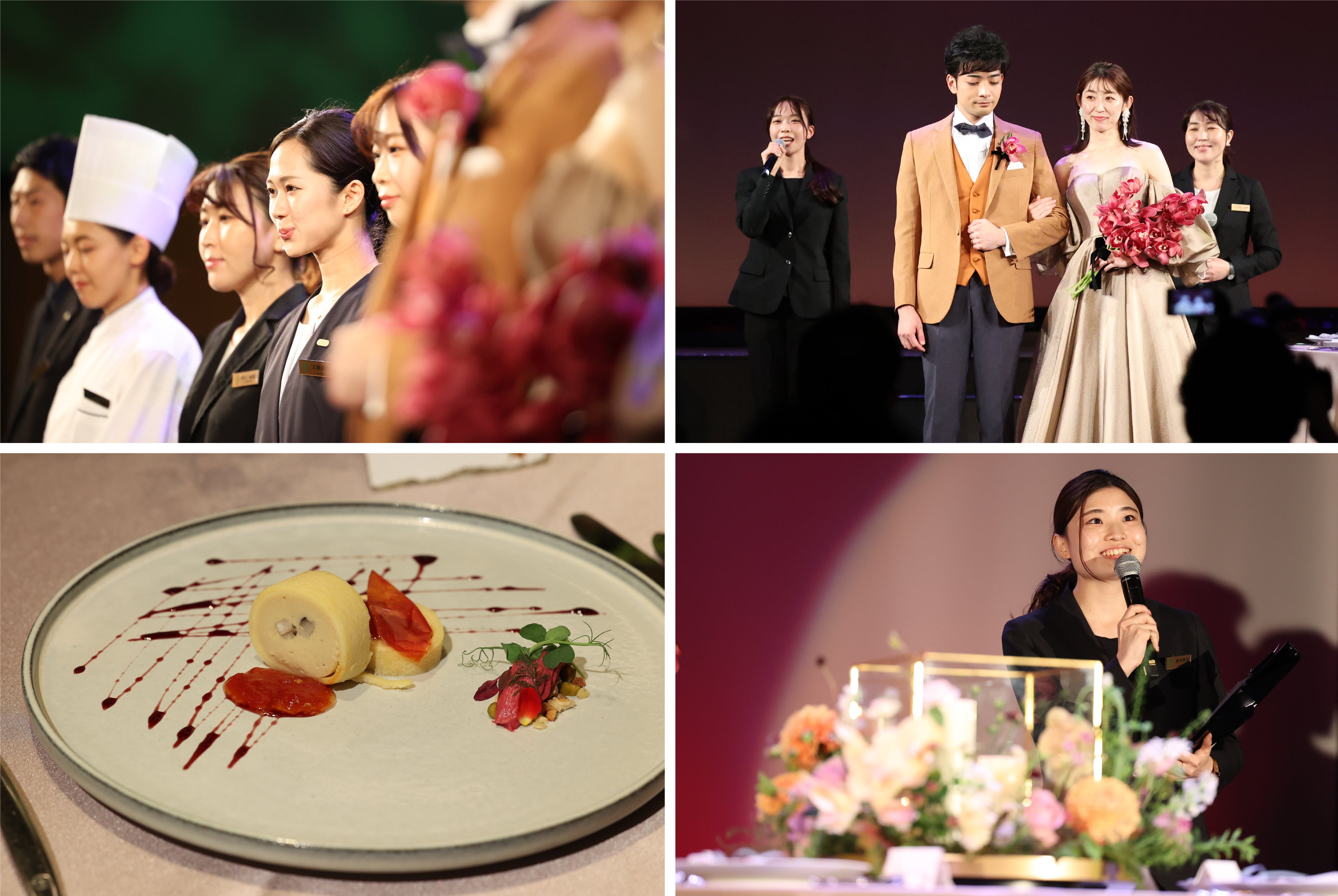本コンテストの様子は、八芳園が開発したオンラインイベントプラットフォーム「WE ROOM」を通じてオンラインでも配信され、お集まりいただいた業界メディアの審査委員をはじめ、オンラインにて視聴するブライダル専門学校生や会場に集まったスタッフの投票により、優勝チームを決定いたしました。