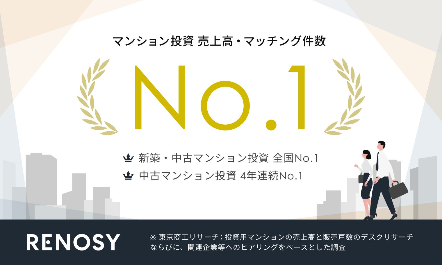 ネット不動産投資のRENOSY、新築・中古マンション投資の売上高、マッチング件数ともに全国No.1を獲得