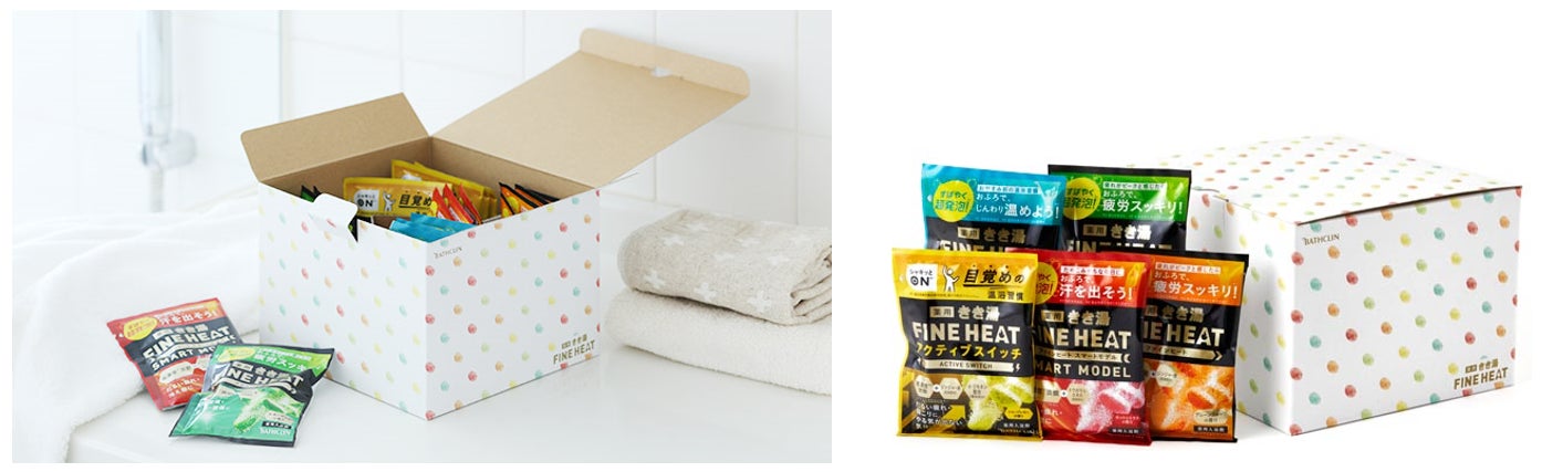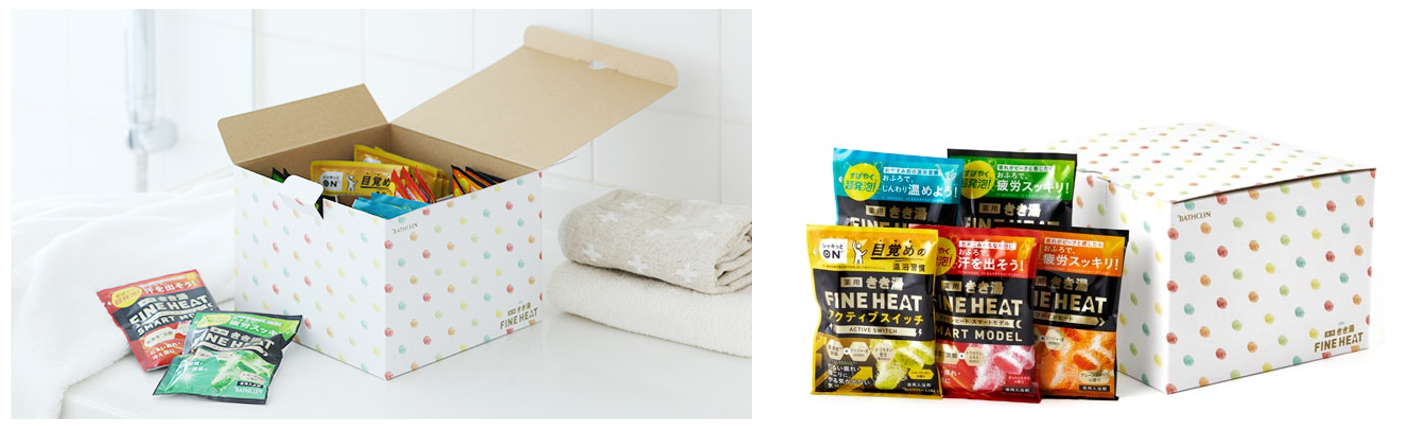 積極的に健康増進に励む生活者をサポートする「きき湯ファインヒート」から、LOHACO限定で5種20包入りの大容量タイプが登場。5種それぞれに寄り添ってくれる症状に違いがありますので、日々の気分や体調にあわせてご使用いただけます。5種アソートタイプのため、毎日入浴剤を選べる楽しさも演出します。パッケージのドット柄デザインは、きき湯ファインヒートのブリケット製剤を意識し、5種それぞれの粒の色、お湯の色を表現。洗面所にそのまま置いてもなじむデザインで、見せる収納が可能です。